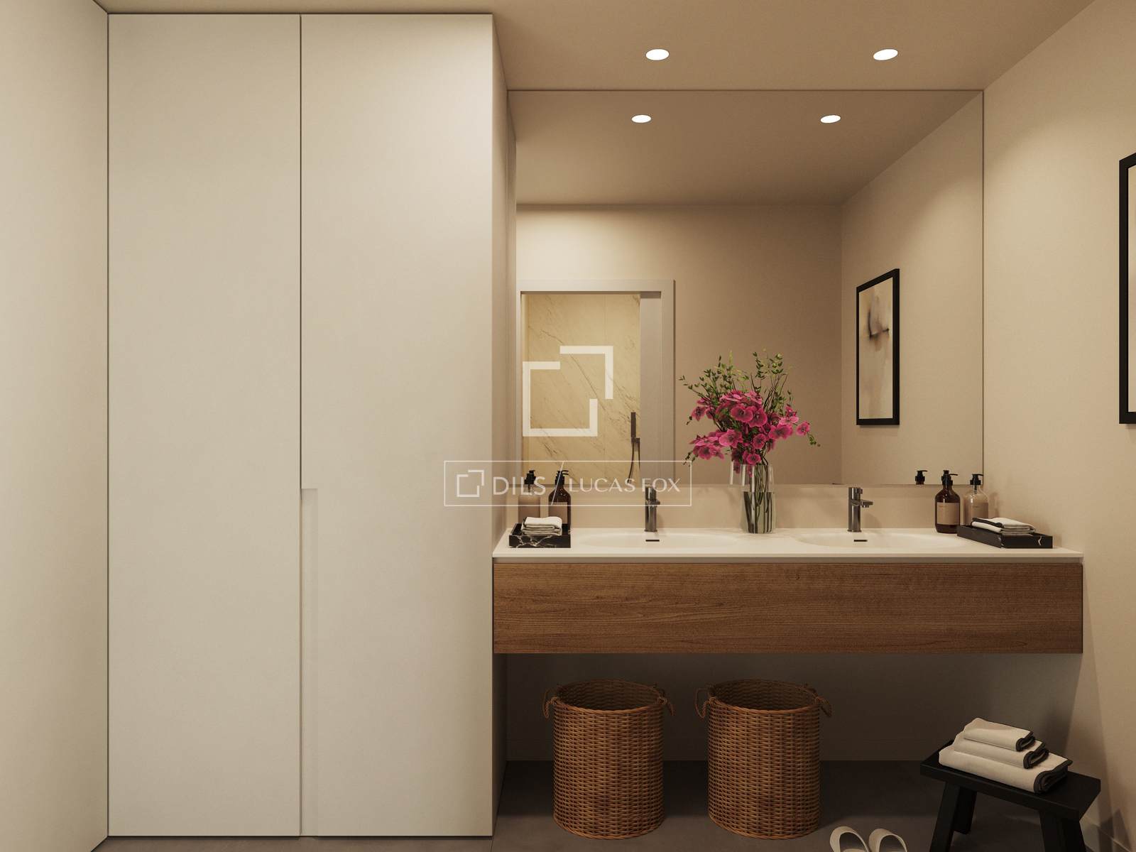 Die Küche ist komplett ausgestattet mit einer Porzellan-Arbeitsplatte, Ober- und Unterschränken von Armony sowie Siemens-Geräten: einem Induktionskochfeld mit integrierter Dunstabzugshaube, Backofen, Mikrowelle, Kühlschrank und Geschirrspüler. Die Badezimmer verfügen über Keramikfliesen, Porzellanarmaturen und eine ebenerdige Regendusche mit ultradünner Duschwanne.