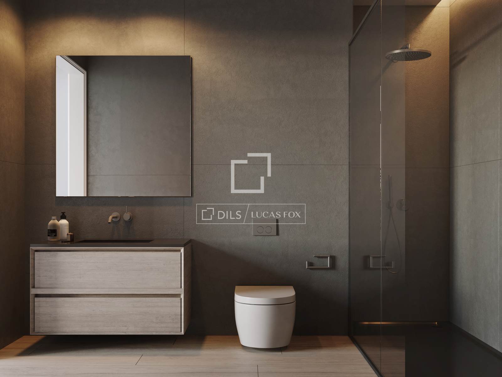 Die Küche ist komplett ausgestattet mit einer Porzellan-Arbeitsplatte, Ober- und Unterschränken von Armony sowie Siemens-Geräten: einem Induktionskochfeld mit integrierter Dunstabzugshaube, Backofen, Mikrowelle, Kühlschrank und Geschirrspüler. Die Badezimmer verfügen über Keramikfliesen, Porzellanarmaturen und eine ebenerdige Regendusche mit ultradünner Duschwanne.