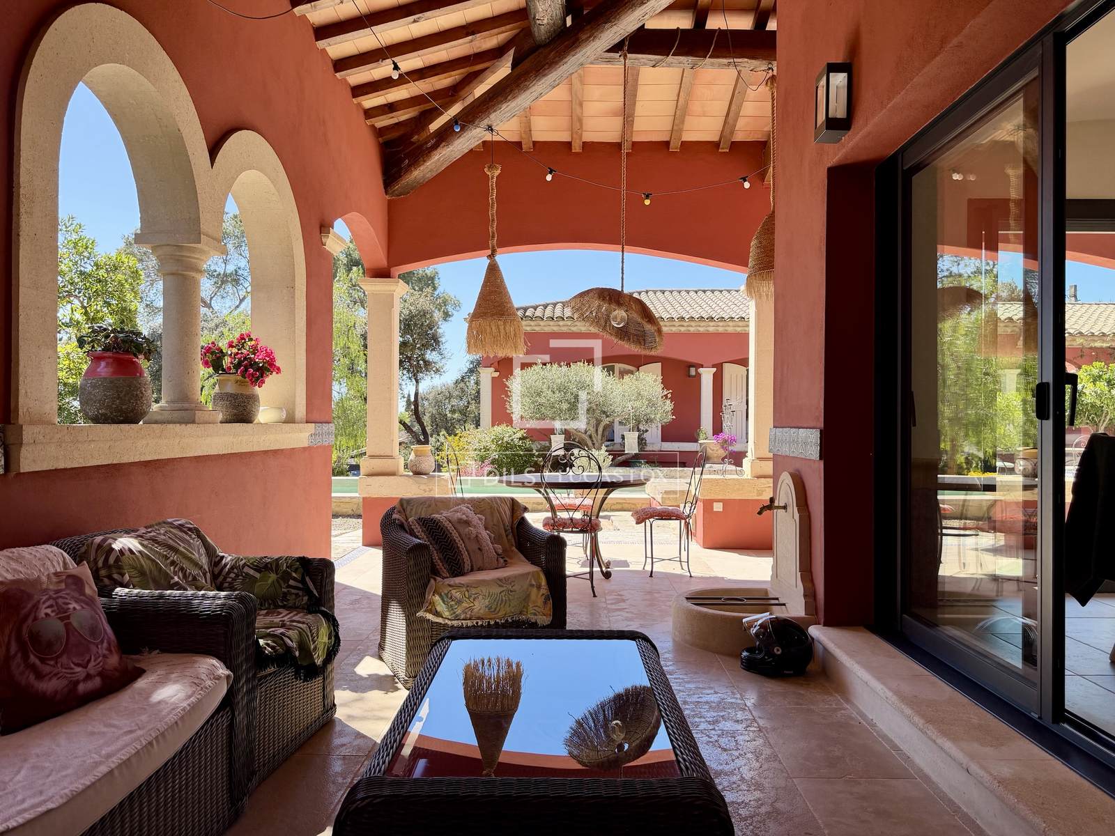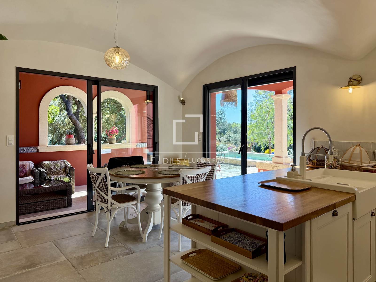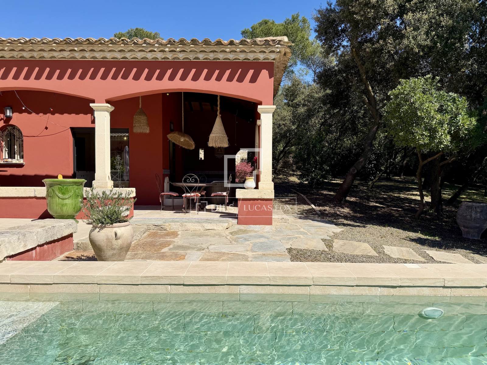 Mehrere Räumlichkeiten vervollständigen dieses Ensemble: ein Nebengebäude mit Terrasse, eine separate Steinwerkstatt (ideal für eine Praxis oder andere Nutzung), eine Doppelgarage und ein großer Abstellraum (ideal als Weinkeller). Das Anwesen verfügt über Fenster auf allen vier Seiten, und alle Zimmer öffnen sich zu Wegen und Terrassen. Eine Sommerlounge grenzt sogar an die Küche und bietet direkten Zugang zum Swimmingpool.