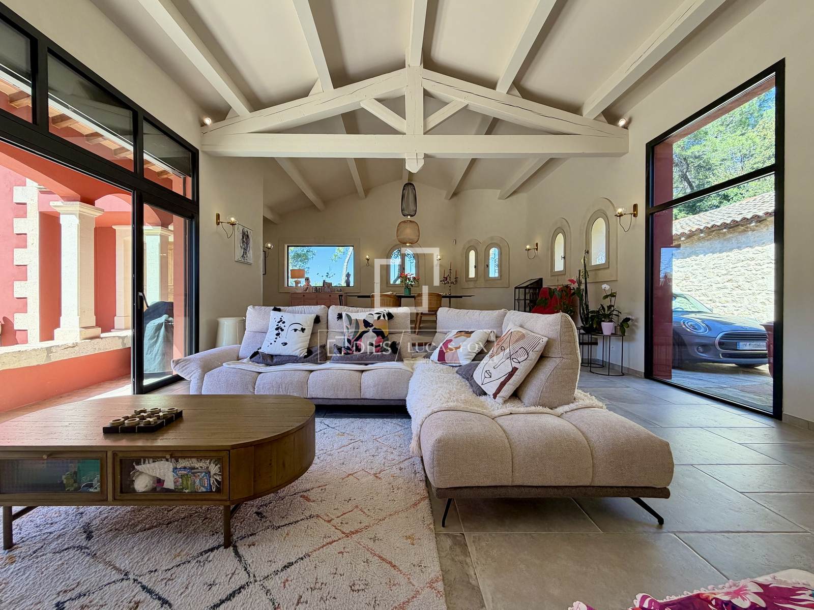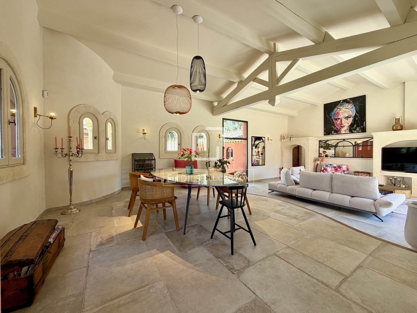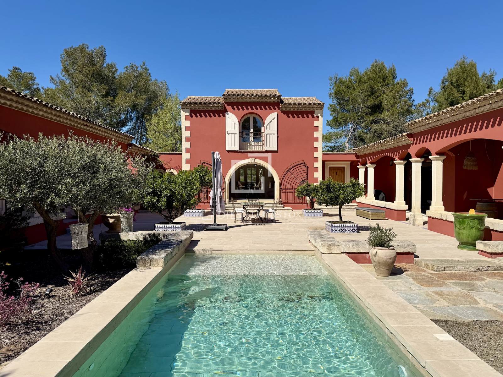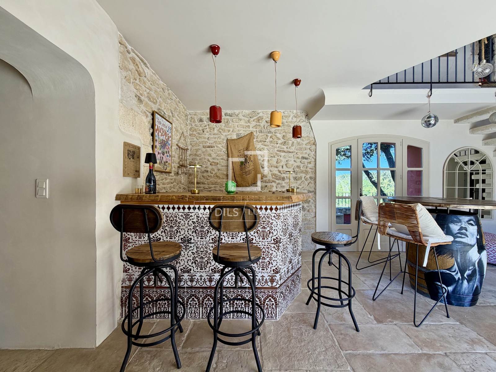 Mehrere Räumlichkeiten vervollständigen dieses Ensemble: ein Nebengebäude mit Terrasse, eine separate Steinwerkstatt (ideal für eine Praxis oder andere Nutzung), eine Doppelgarage und ein großer Abstellraum (ideal als Weinkeller). Das Anwesen verfügt über Fenster auf allen vier Seiten, und alle Zimmer öffnen sich zu Wegen und Terrassen. Eine Sommerlounge grenzt sogar an die Küche und bietet direkten Zugang zum Swimmingpool.