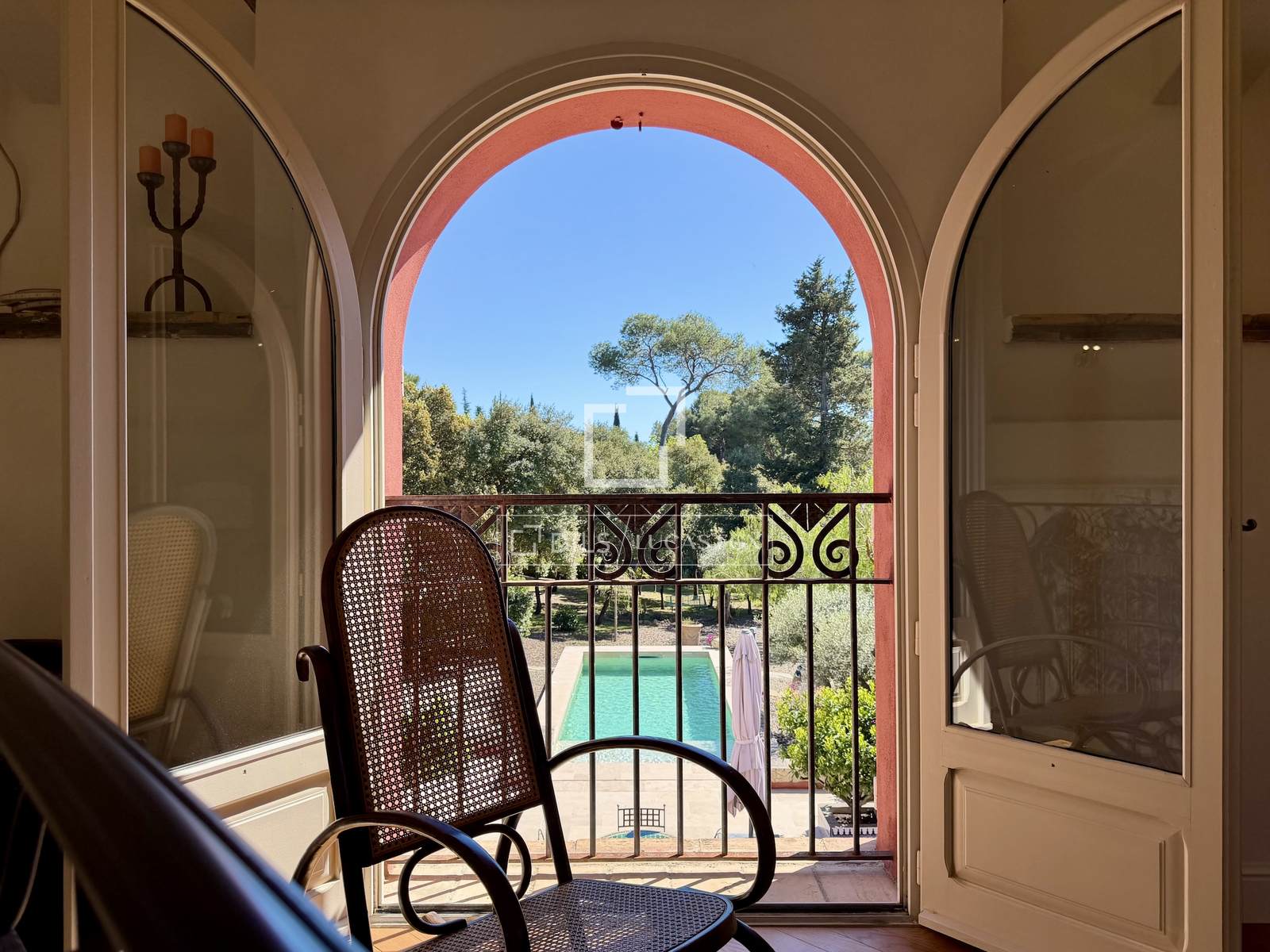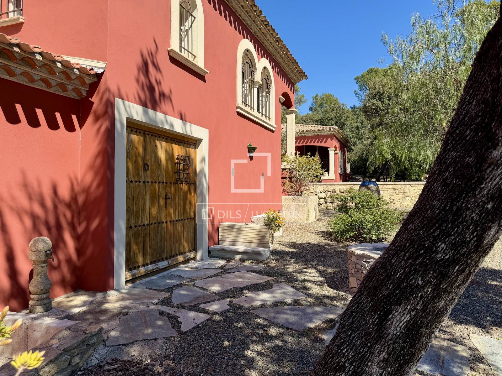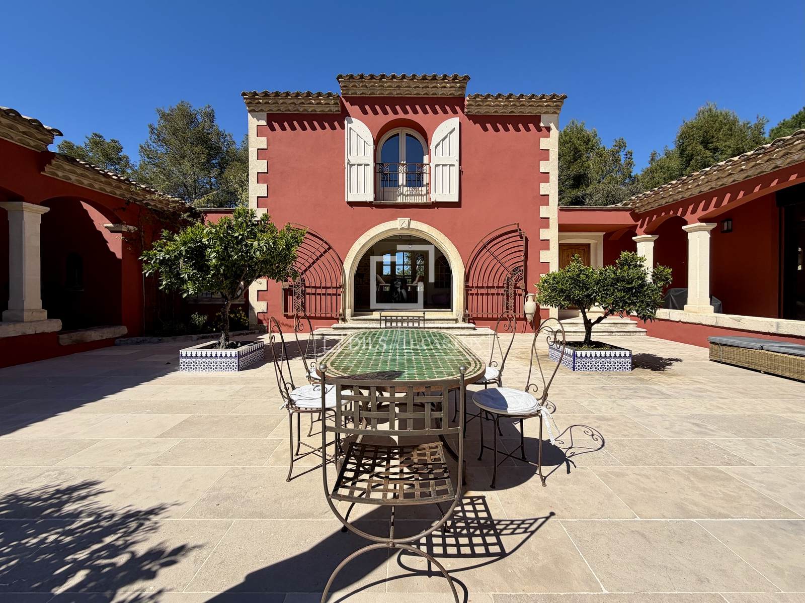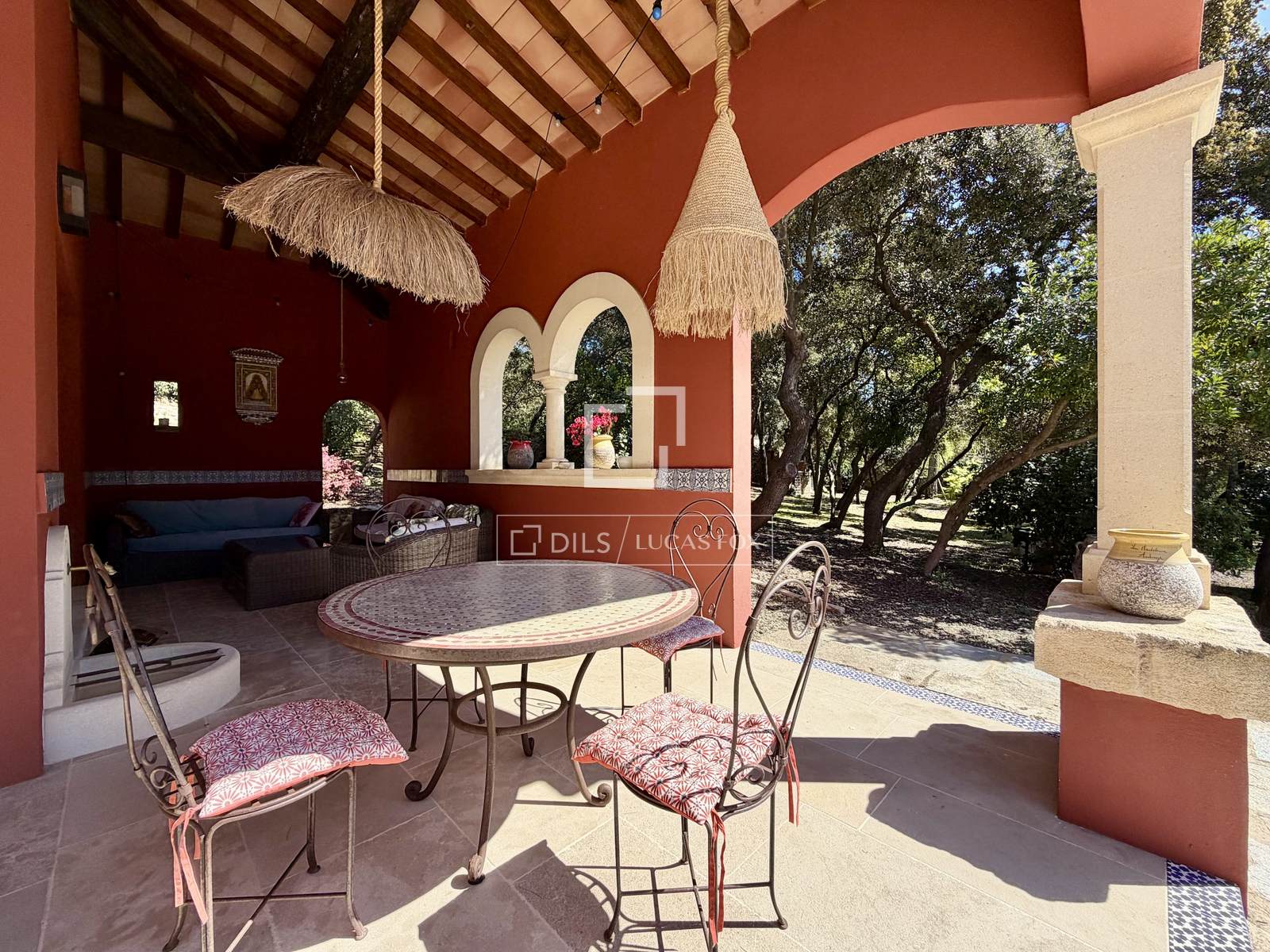Inspiriert von Haciendas, ließ der Vorbesitzer das Anwesen vor etwa dreißig Jahren um eine ehemalige Jagdhütte herum errichten. Die Handwerkskunst ist besonders raffiniert; verschiedene Meisterhandwerker brachten ihr Können in Stein-, Holz- und Eisenbearbeitung ein.