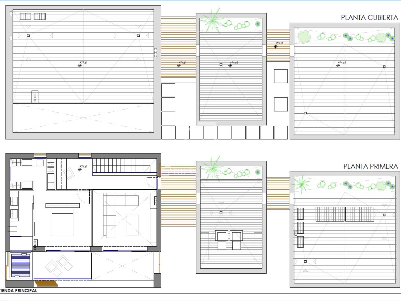 Das Haus ist nach Norden hin geschlossen und nach Süden hin offen. Durch die privaten Patios wird eine kontrollierte Beleuchtung gewährleistet, die die Privatsphäre vom Eingang aus sichert.