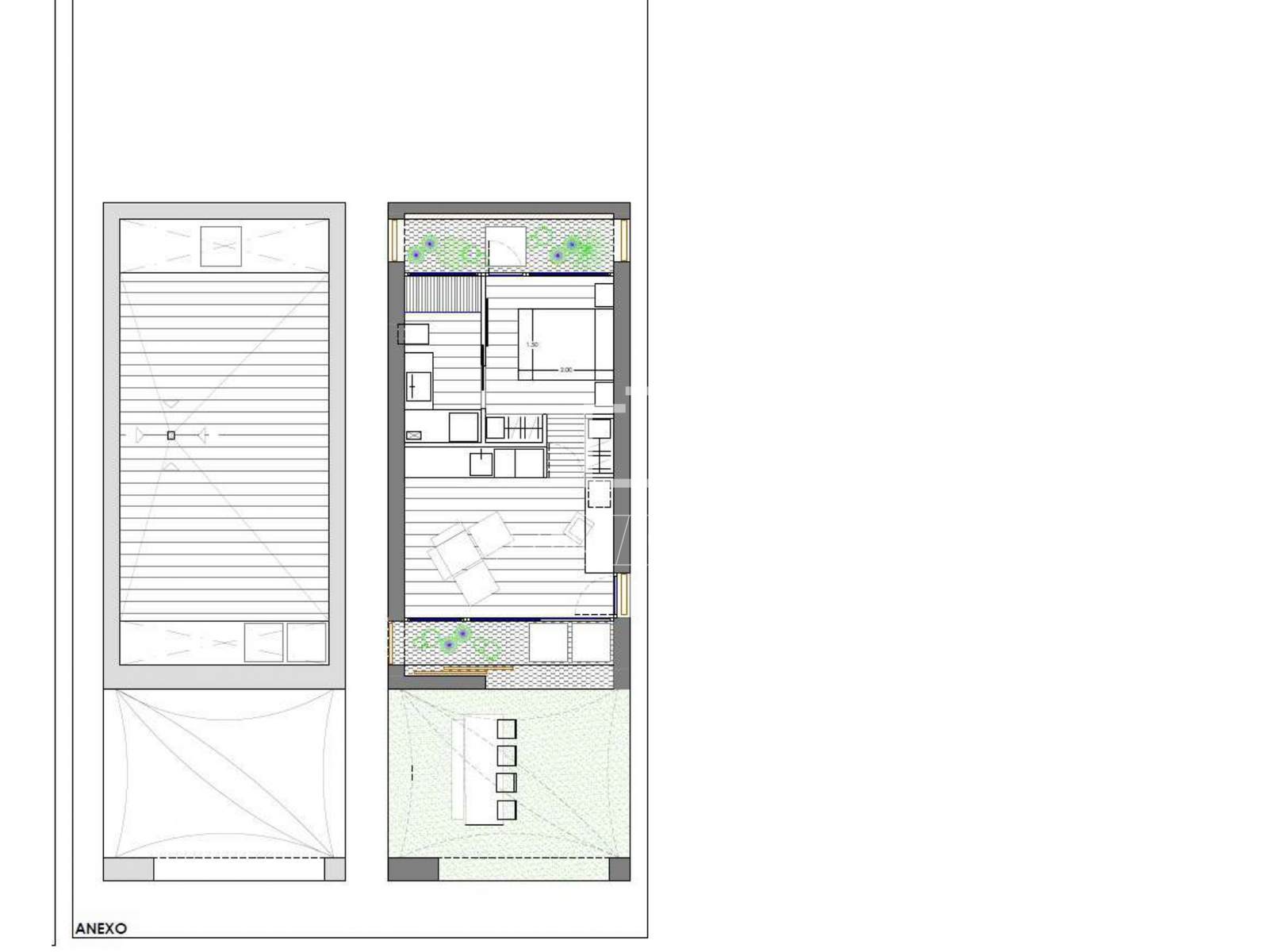 40 m² Nutzfläche, entsprechend der Hauptsuite, mit Ankleidezimmer, Badezimmer und privater Terrasse mit Blick auf Dalt Vila und Ibiza.Separater Anhang: