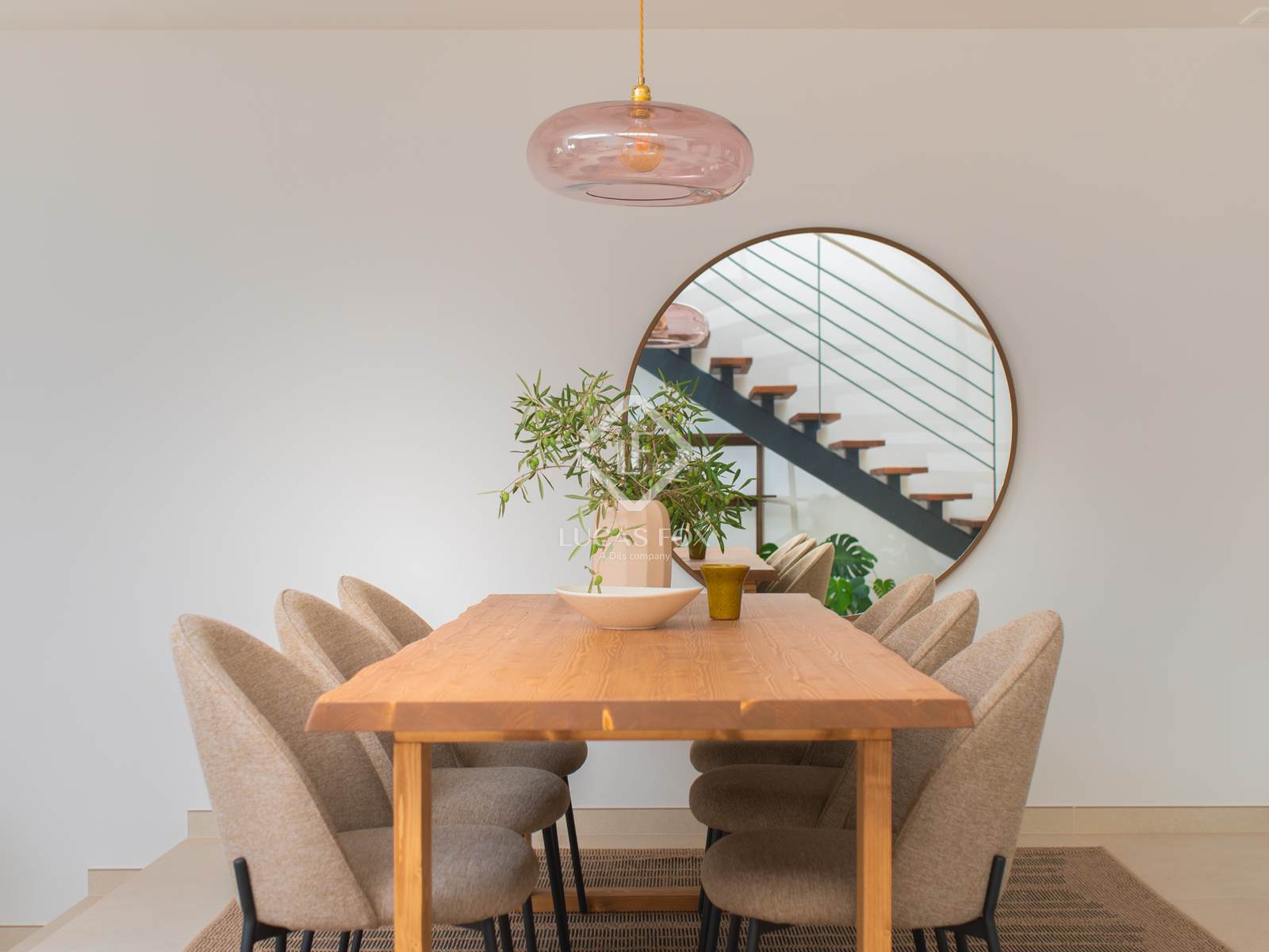 Im Erdgeschoss befinden sich ein geräumiges und helles Wohn-Esszimmer, eine separate Designerküche, ein Gäste-WC, ein Flur und eine private Garage. Von den Haupträumen aus hat man Zugang zur Außenterrasse, zum privaten Pool und zur Sonnenliegefläche, die zum Genießen und Leben im Freien konzipiert ist.