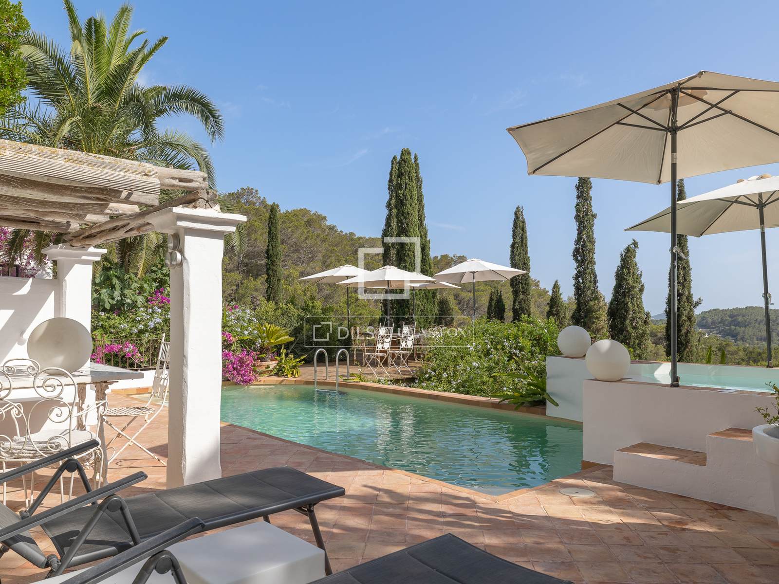 Charmantes Landhaus mit 4 Schlafzimmern, Pool und Terrassen in der Nähe von Santa Eulalia zu verkaufen. Bietet Privatsphäre, naturnahe Umgebung und gute Anbindung an die Dörfer Ibizas.
