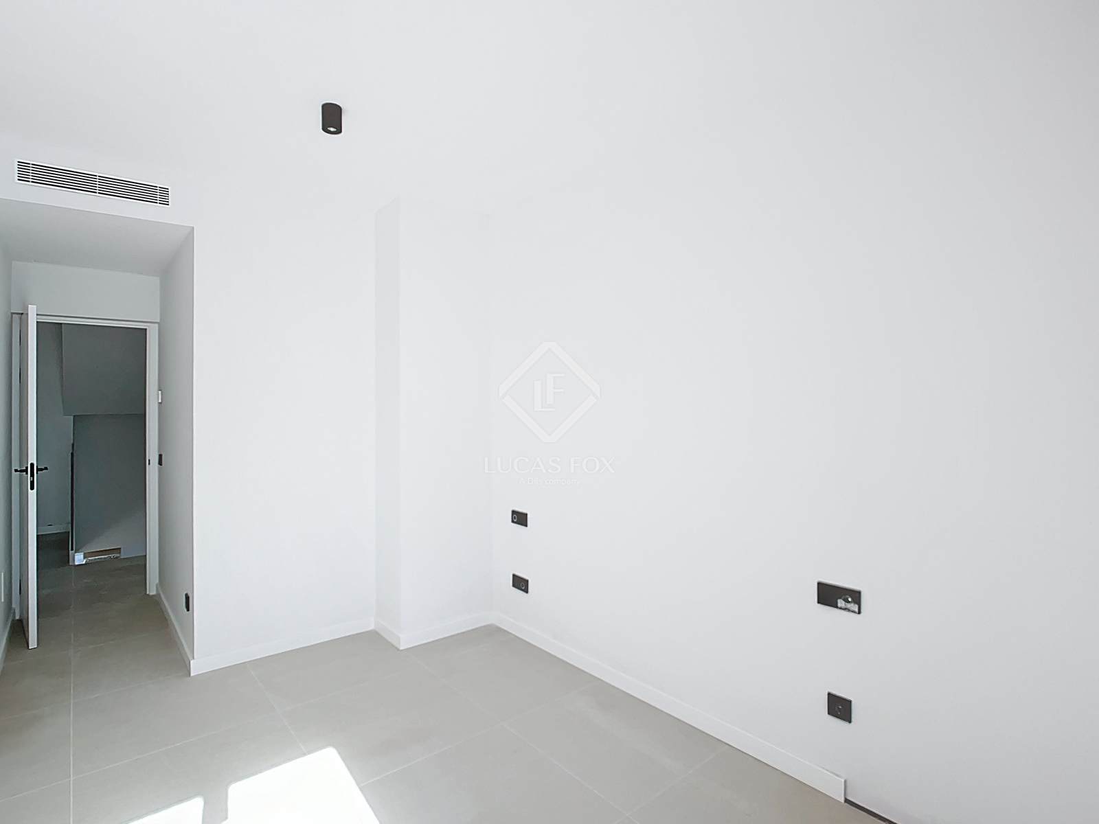 Dieses Haus erstreckt sich über vier komfortable Etagen. Es besticht durch ein modernes und funktionales Design, eine voll ausgestattete Küche, neutrale Farbtöne, die das Raumgefühl maximieren, und natürliche Materialien wie Holz. Große Fenster sorgen für viel Tageslicht in den verschiedenen Räumen.