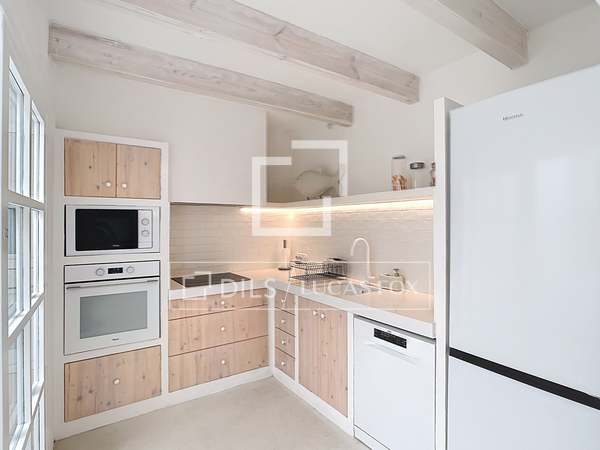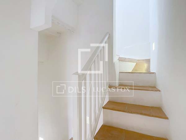 Das Anwesen erstreckt sich über drei komfortable Etagen. Im Erdgeschoss verbindet ein einladender Eingangsbereich und Wohnzimmer sich gegenseitig und besticht durch seine gewölbte Decke aus Marés-Stein und die originalen Fliesenböden. Unter der Treppe befindet sich ein praktischer Abstellraum. Von hier aus gelangt man in die Wohnküche, einen warmen und funktionalen Raum, der mit dem Wohnzimmer verbunden ist. Dieses öffnet sich zu einer charmanten, 18 m² großen privaten Terrasse mit dekorativen Elementen aus Marés-Stein – ideal für Mahlzeiten im Freien und gemütliche Abende.