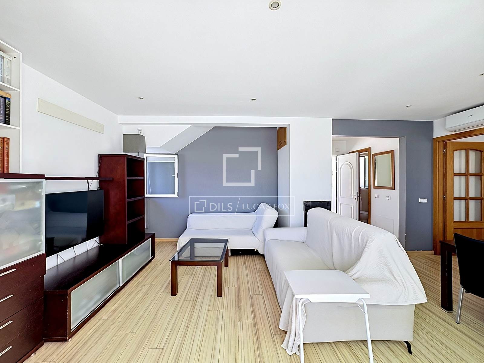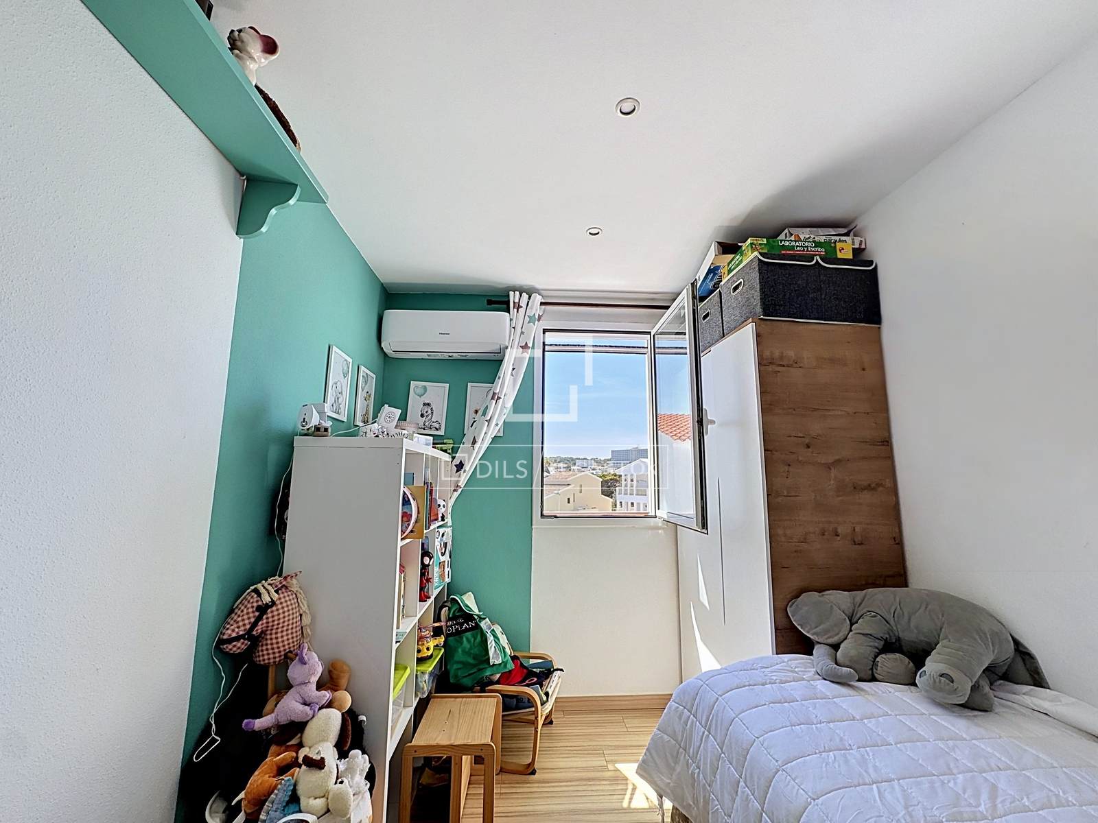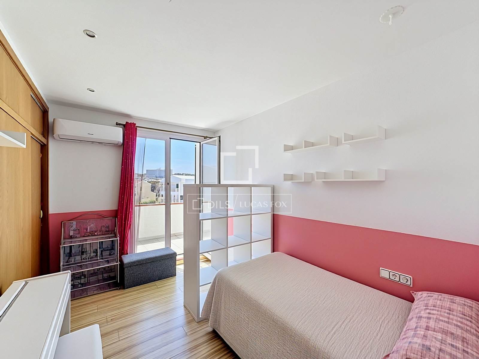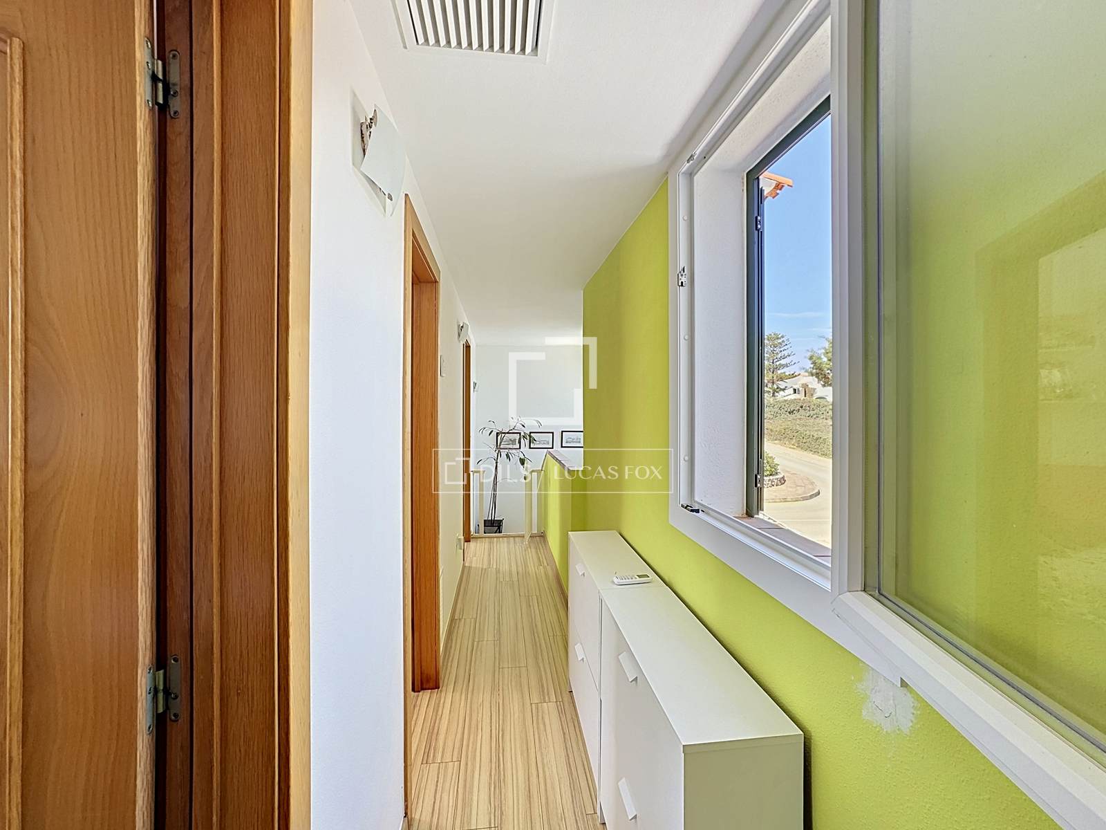 Im Obergeschoss befinden sich die Schlafräume: drei geräumige und helle Schlafzimmer nach außen, alle mit Einbauschränken und Klimaanlage/Heizung. Eines der Schlafzimmer bietet direkten Zugang zu einem privaten Balkon mit Panoramablick – der perfekte Ort zum Entspannen. Ein Badezimmer befindet sich ebenfalls auf dieser Etage.