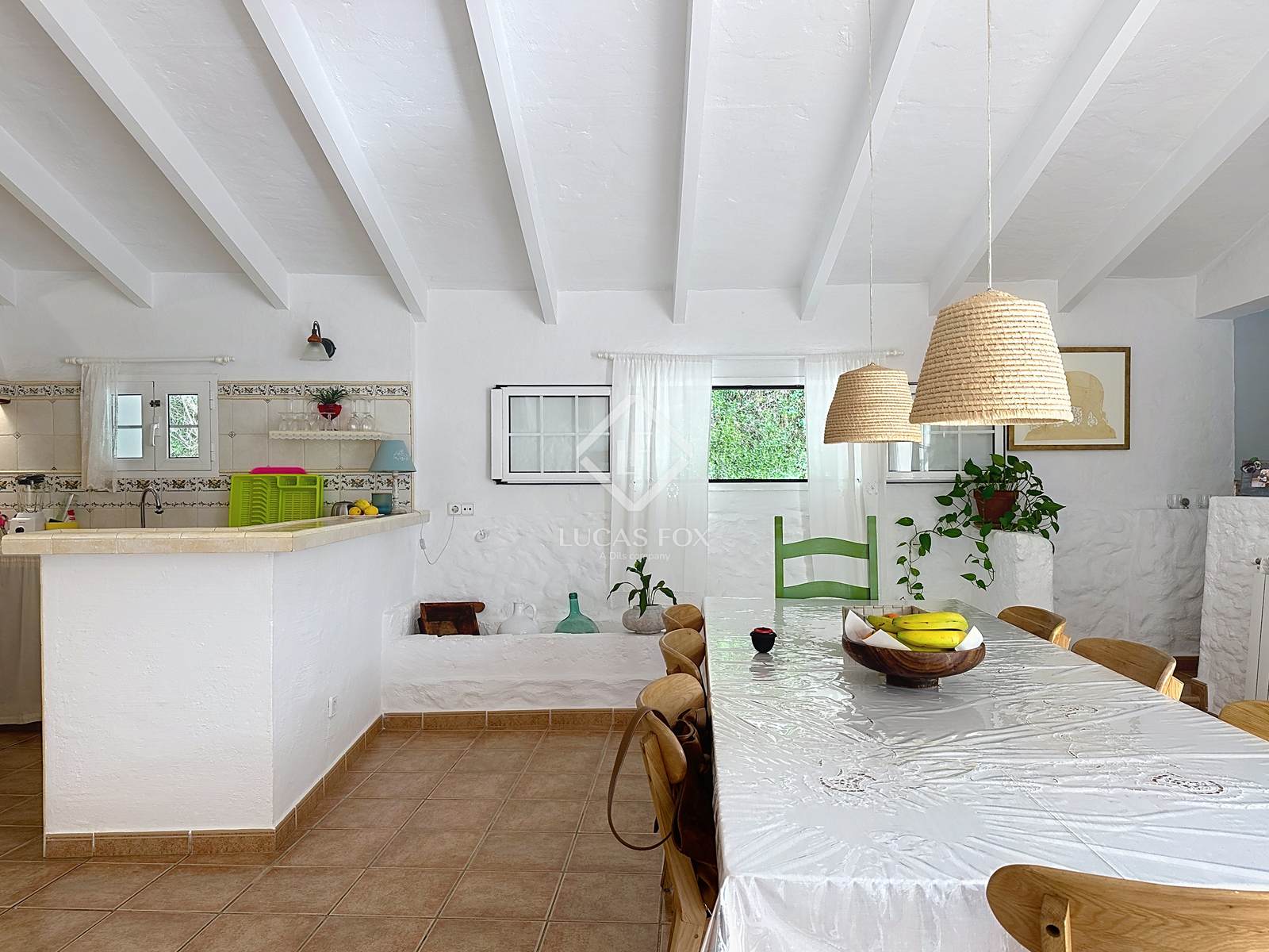 Lucas Fox präsentiert ein ganz besonderes Anwesen in Llumassanes, im ruhigsten Teil des Dorfes, wo die letzten Häuser inmitten der Landschaft abgeschieden liegen, aber gleichzeitig nur fünf Minuten von Maó und Sant Lluís entfernt sind und somit Privatsphäre und die Nähe zu allen Annehmlichkeiten vereinen.