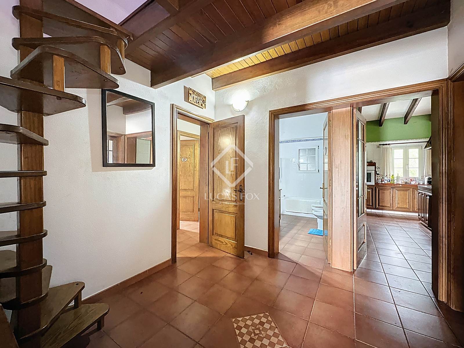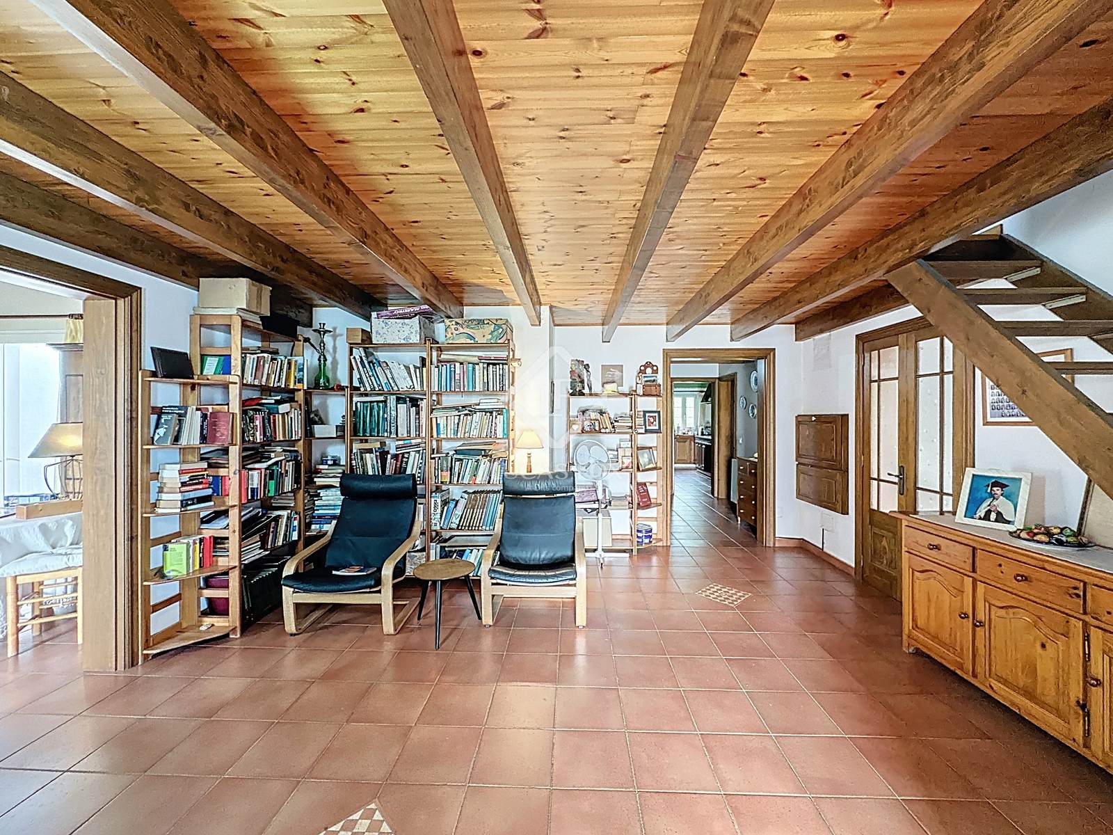 Das zweite Gebäude ist eine alte, traditionell erbaute Scheune, deren genaue Datierung schwierig ist. Sie wurde mit großem Geschmack und unter größtmöglicher Schonung der Originalmaterialien restauriert und bietet auf 206 m² drei Schlafzimmer, zwei Badezimmer, zwei Wohnzimmer, eines davon mit Essbereich, und eine offene Küche – ein warmes Zuhause voller Charakter.