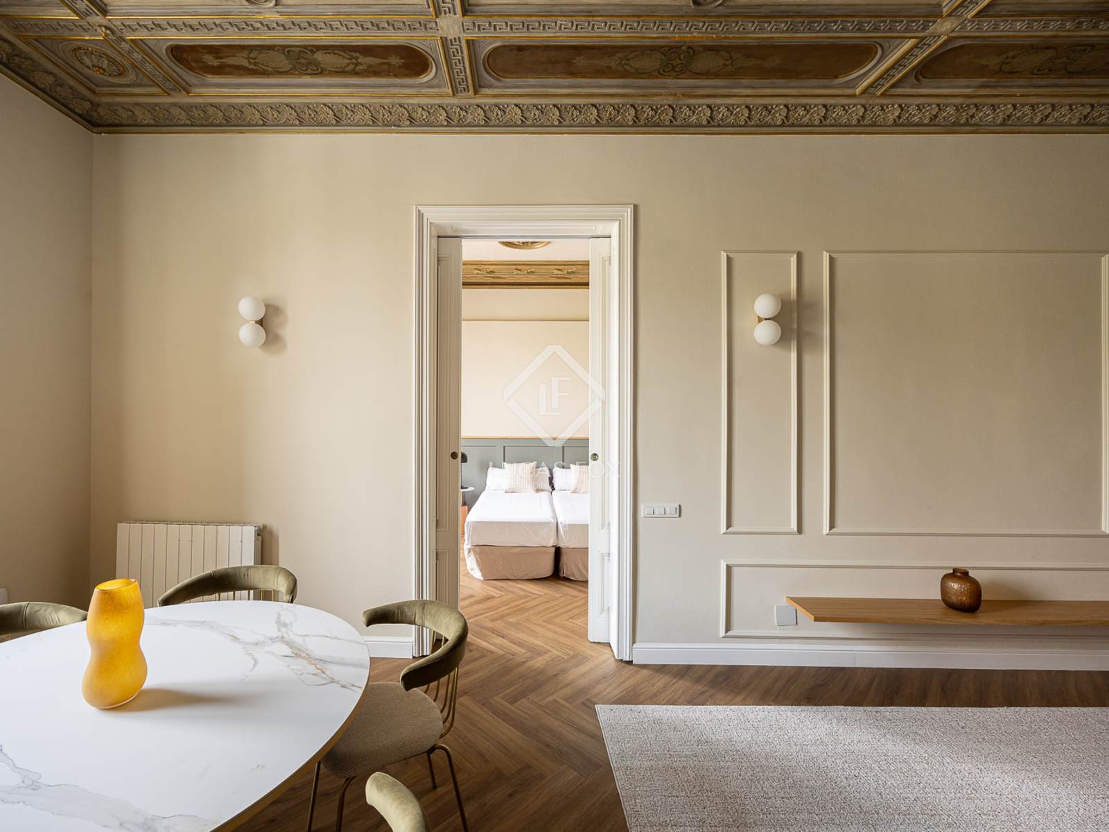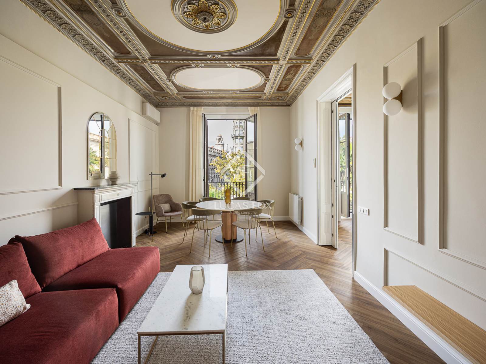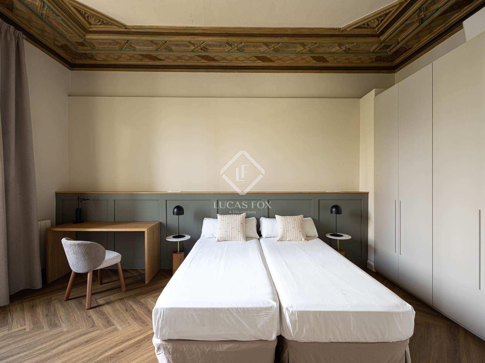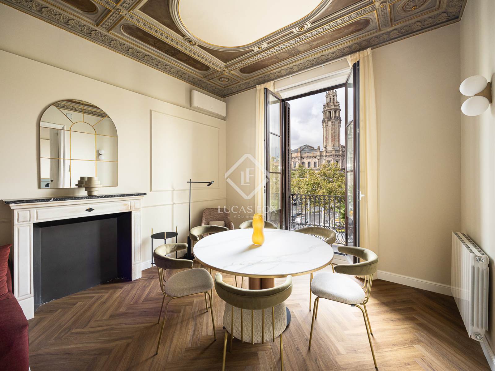 Die Innenräume verbinden den Charakter eines historischen Anwesens mit modernem Komfort und bewahren originale Elemente wie Stuckleisten, Fischgrätparkett und Kamineinfassungen, allesamt mit hochwertiger Ausstattung. Die Haupträume bieten einen freien Blick auf den Passeig Isabel II und die Via Laietana in einer der begehrtesten Lagen im historischen Zentrum.
