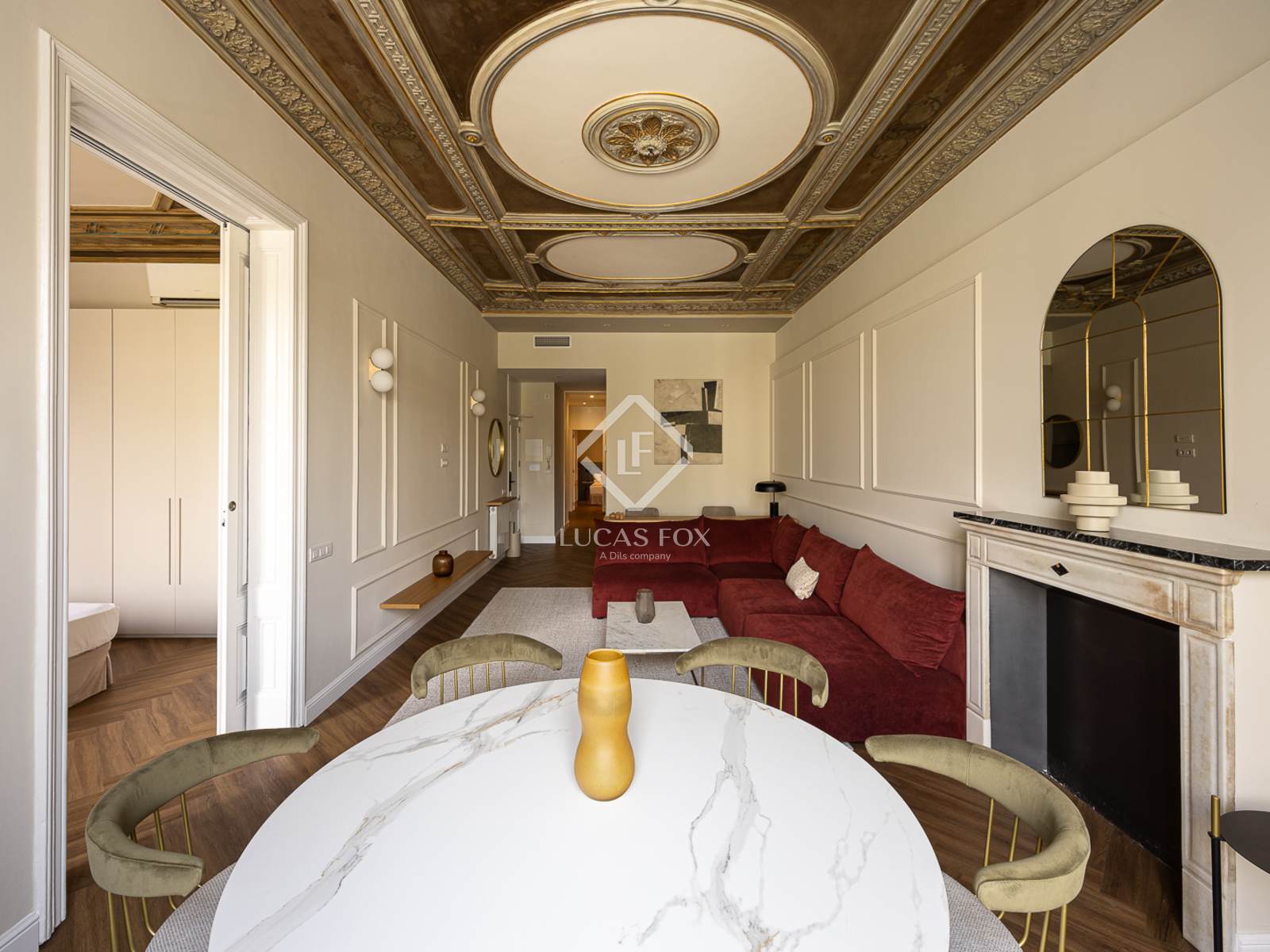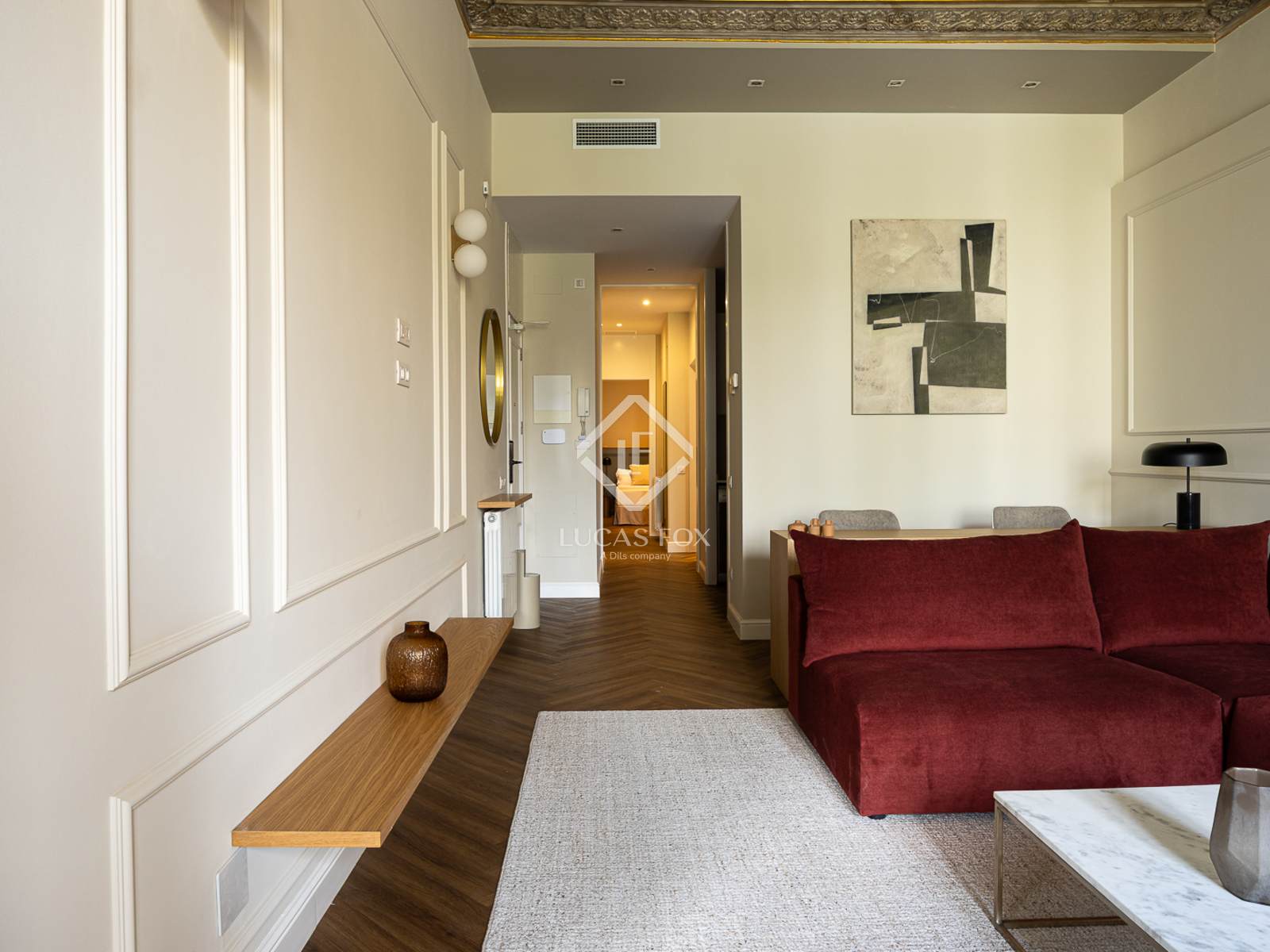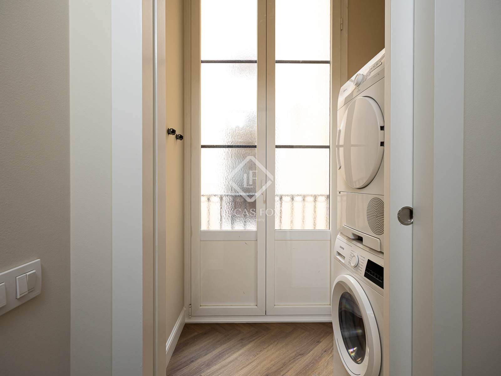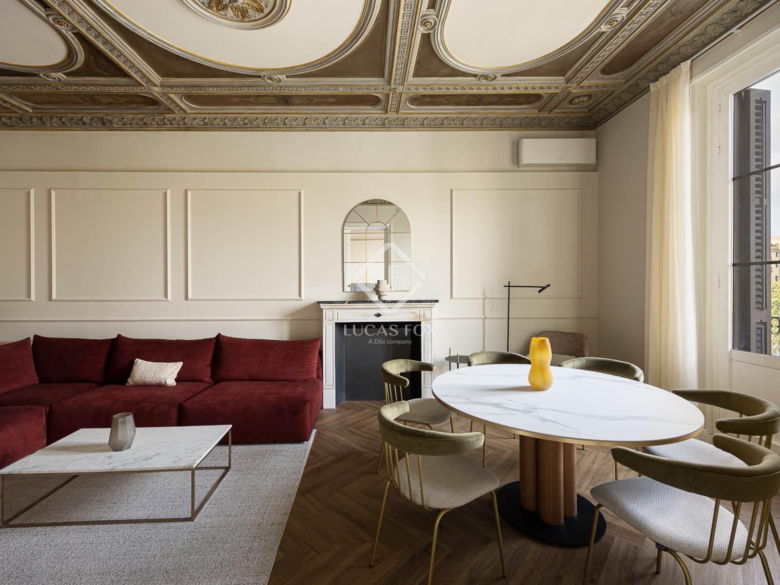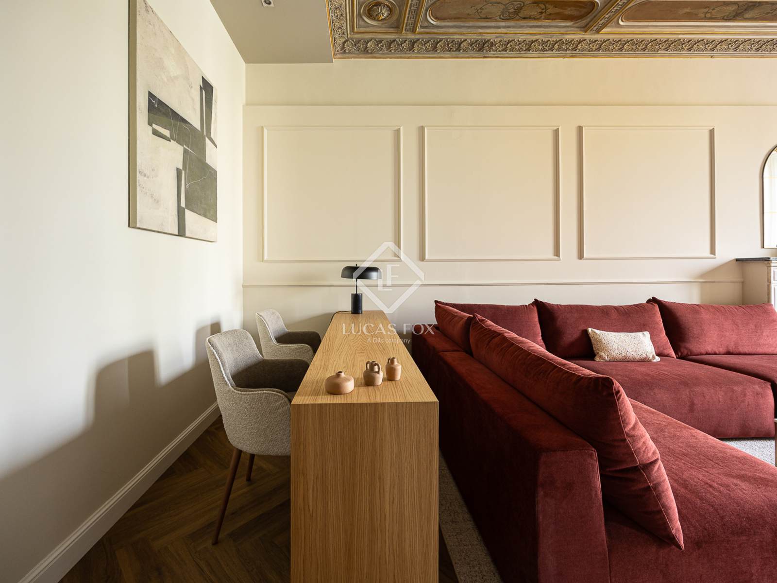 Die Innenräume verbinden den Charakter eines historischen Anwesens mit modernem Komfort und bewahren originale Elemente wie Stuckleisten, Fischgrätparkett und Kamineinfassungen, allesamt mit hochwertiger Ausstattung. Die Haupträume bieten einen freien Blick auf den Passeig Isabel II und die Via Laietana in einer der begehrtesten Lagen im historischen Zentrum.
