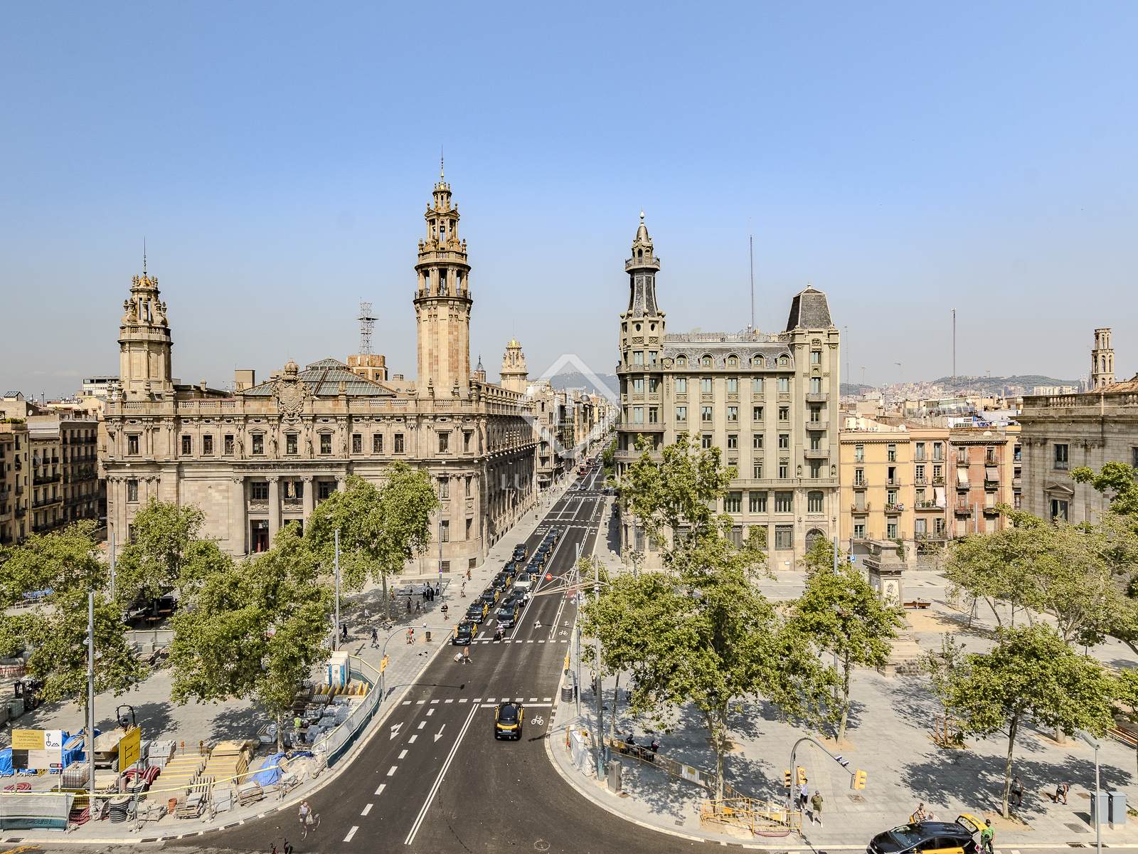 Unverbaute Sicht auf den Passeig Isabel II, die Via Laietana und den Hafen.