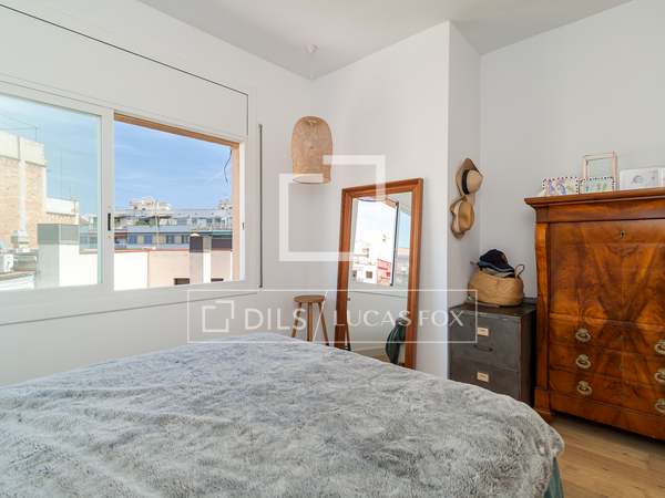 Wir präsentieren dieses spektakulär renovierte, 120 m² große Penthouse, bezugsfertig. Es befindet sich in einer ruhigen Fußgängerzone im begehrten Viertel Nova Esquerra de l'Eixample. Dies ist zweifellos eine einmalige Gelegenheit für alle, die ein elegantes, funktionales Zuhause mit allen Annehmlichkeiten suchen.