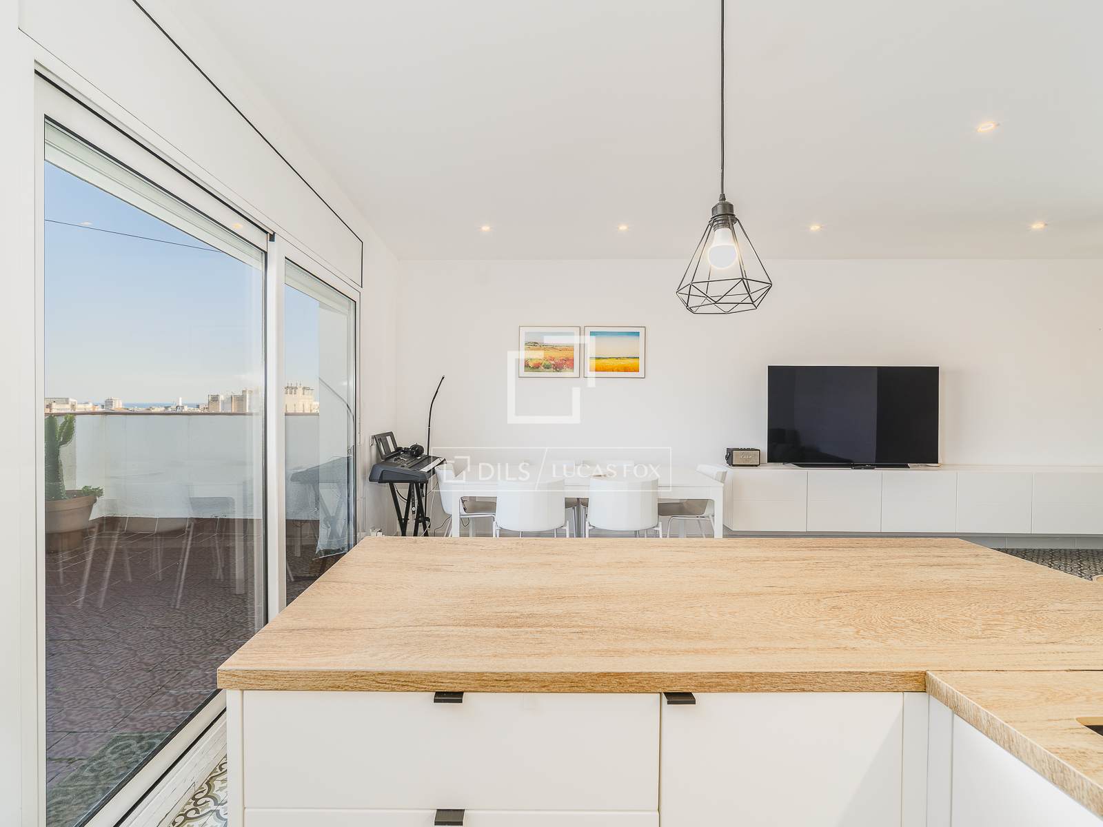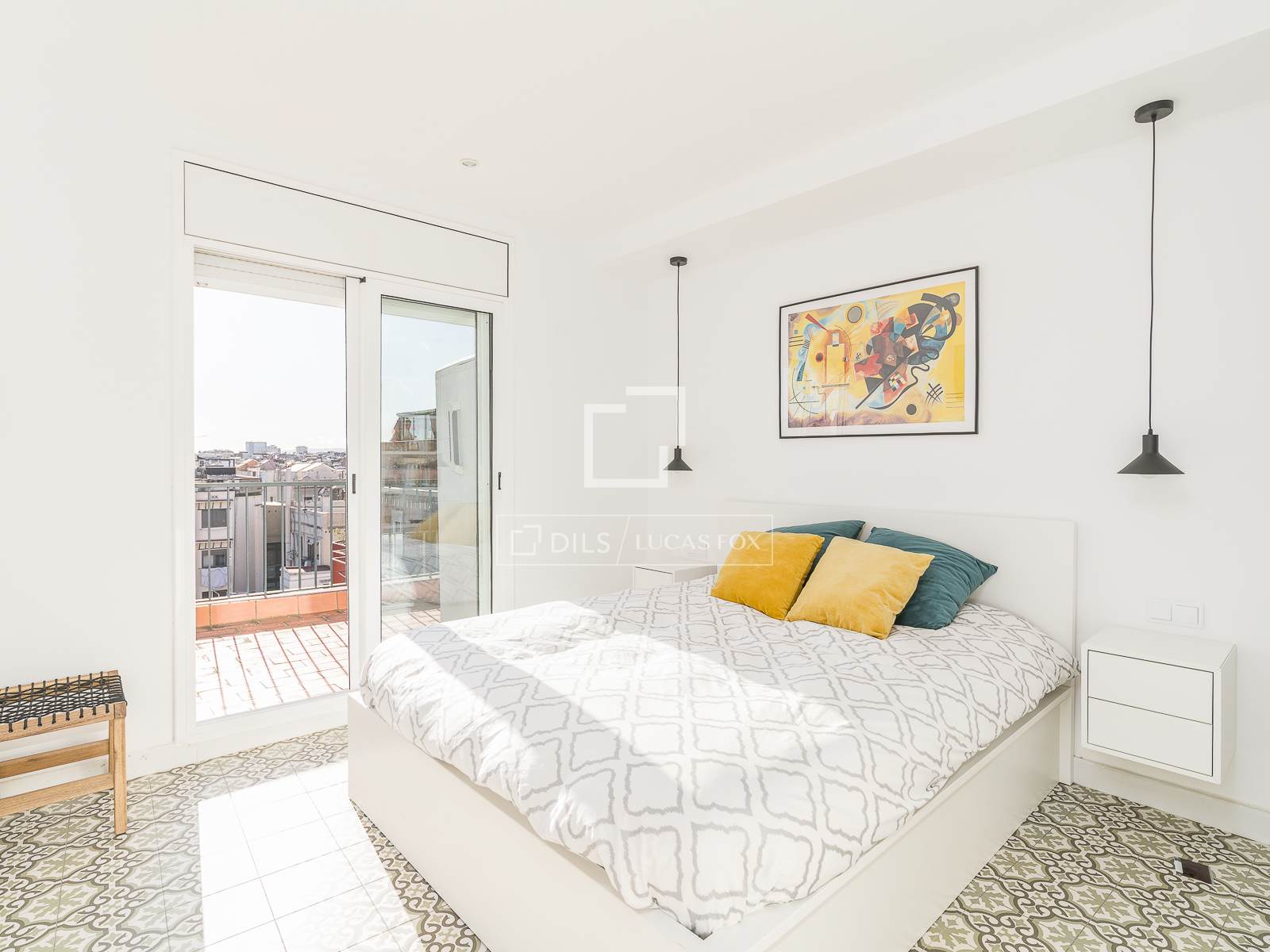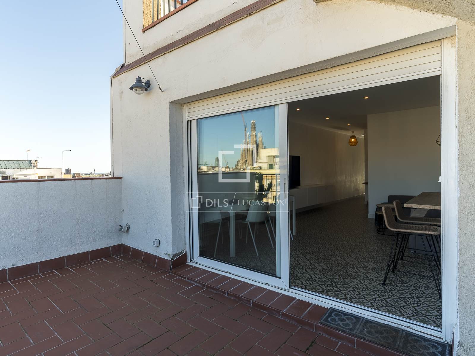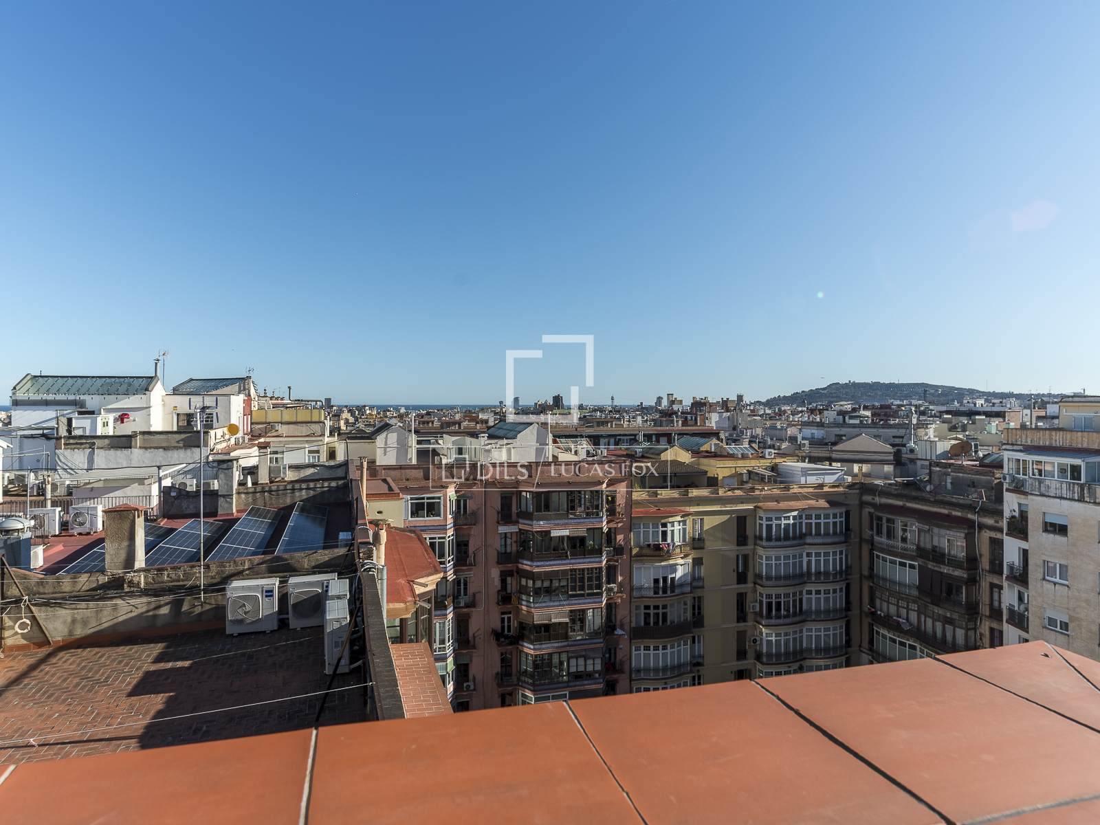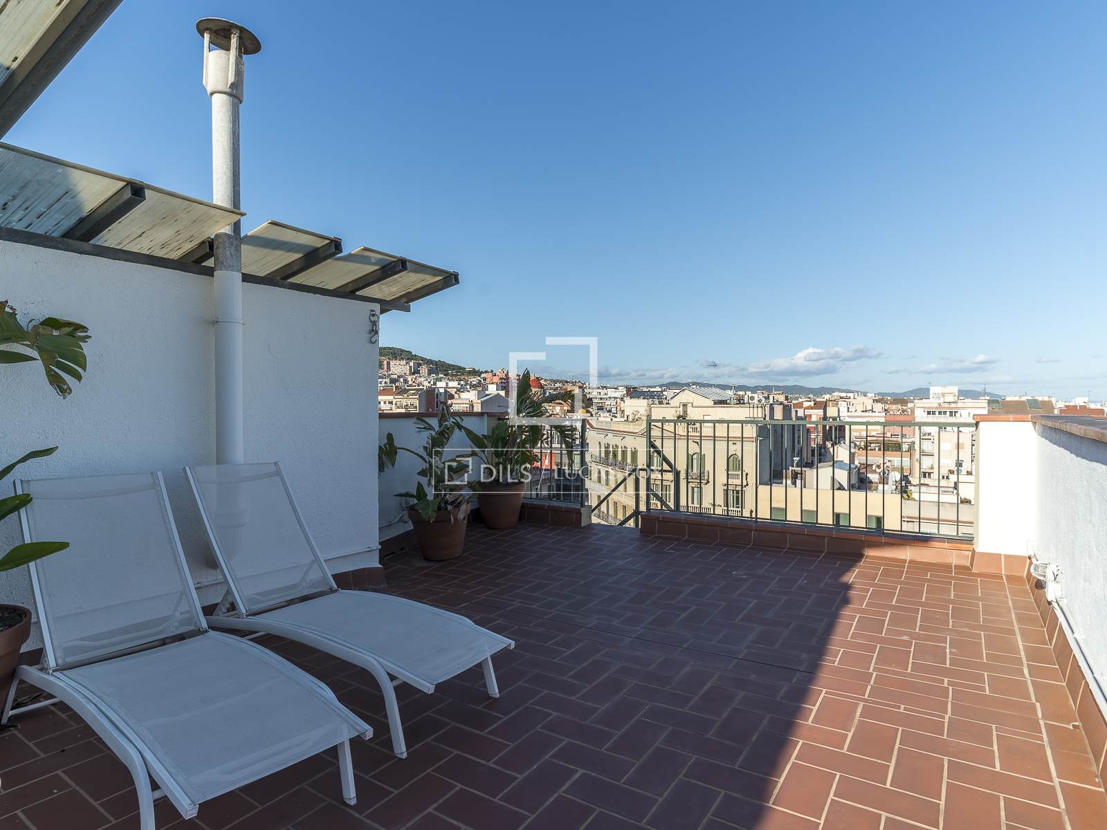 Sehr helles Penthouse in einem stattlichen Gebäude aus dem Jahr 1902 mit Aufzug, zwei Terrassen von 83 m² und 90 m², Balkon und Blick auf das Meer, die Sagrada Familia und Tibidabo.