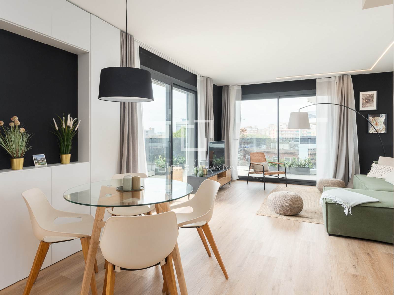Penthouse mit 4 Schlafzimmern und Terrasse in einer neuen Wohnanlage mit Gemeinschaftsgarten, Pool und Fitnessstudio in Sant Andreu, Barcelona, zu verkaufen.