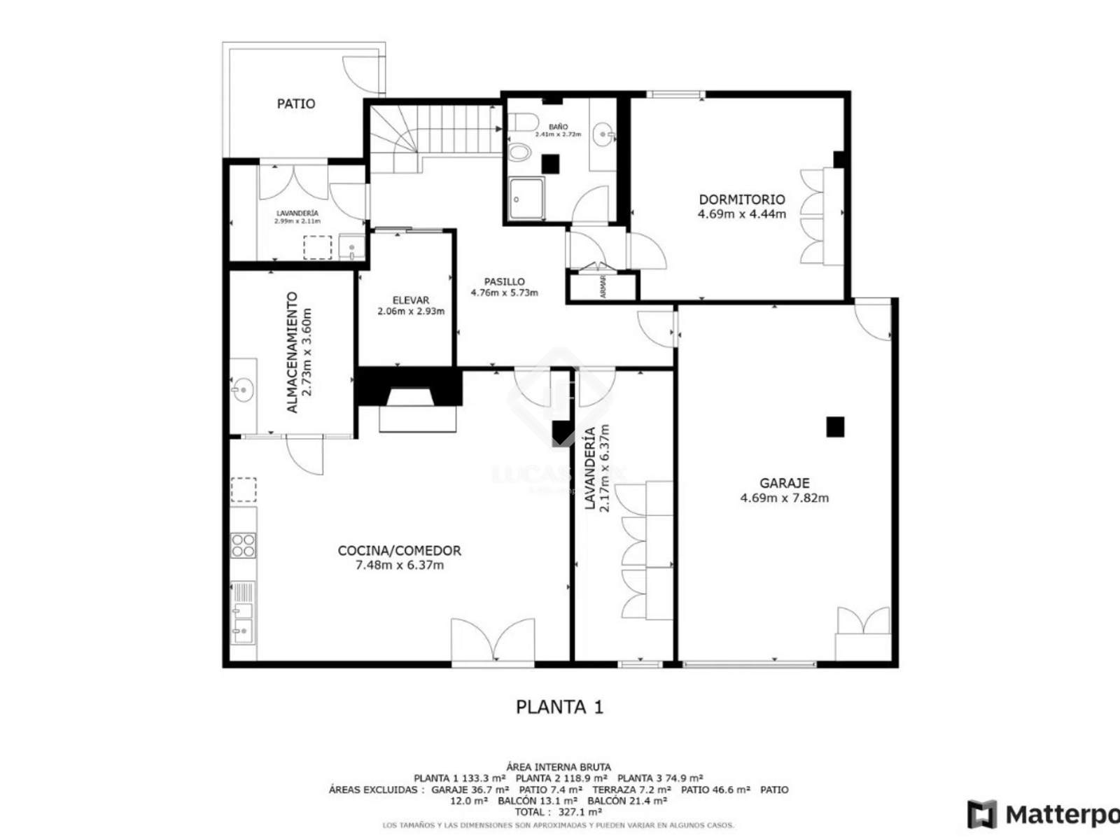 Auf der unteren Etage bietet das Haus viel Platz und mehrere Räume, darunter: zwei Schlafzimmer, eine Sommerküche mit einem großen beheizten Keller daneben, einen Abstellraum, eine Waschküche und eine große Garage mit Platz für bis zu 4 Personen Autos.