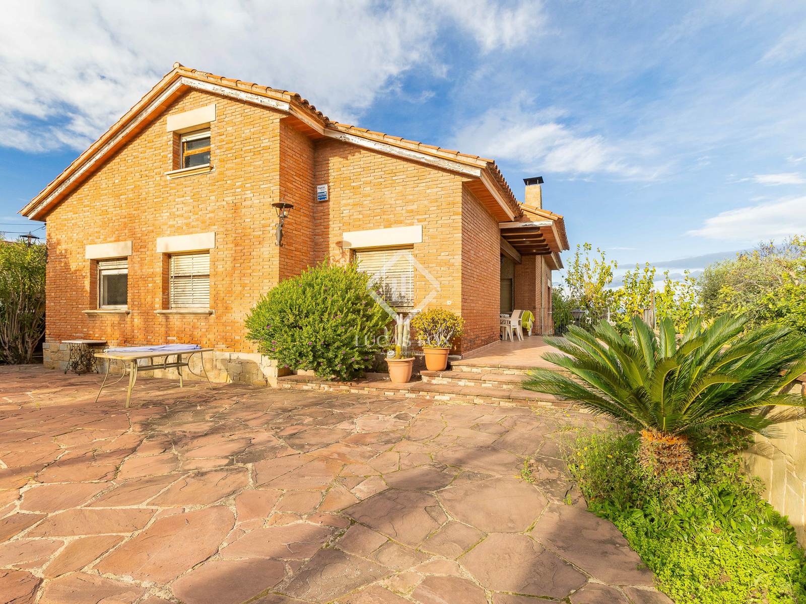 Im Erdgeschoss führt eine einladende Veranda in eine geräumige Eingangshalle, von der aus man alle Räume des Hauses erreicht. Von hier aus gelangt man in ein großes Wohnzimmer, das in zwei Bereiche unterteilt ist: einen gemütlichen Raum mit Kamin und einen Essbereich mit großen Fenstern, die einen einzigartigen Blick auf Montserrat und La Mola bieten und zudem Zugang zu einer schönen Terrasse ermöglichen. Das Wohn-Esszimmer öffnet sich zur separaten Küche, die für zusätzlichen Komfort über zwei Eingänge verfügt.