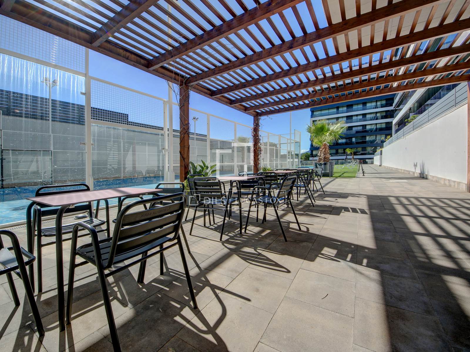 Es befindet sich in einem modernen, 2019 neu errichteten Gebäude mit außergewöhnlichen Gemeinschaftsbereichen, darunter ein Schwimmbad, ein Kinderspielplatz, Kunstrasenflächen, ein Padel-Tennisplatz, ein Fitnessstudio und ein Besprechungsraum.