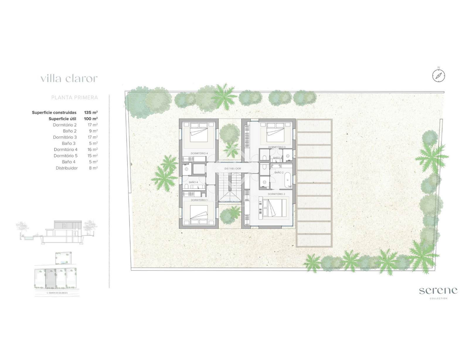 Die Villa Claror verfügt über eine bebaute Fläche von 455 m², fünf Schlafzimmer und fünf Badezimmer sowie eine 79 m² große überdachte Terrasse. Im Außenbereich erwarten Sie private Gärten mit einheimischer Vegetation, ein Swimmingpool, ein Ruhebereich und großzügige Veranden mit Außengrill.