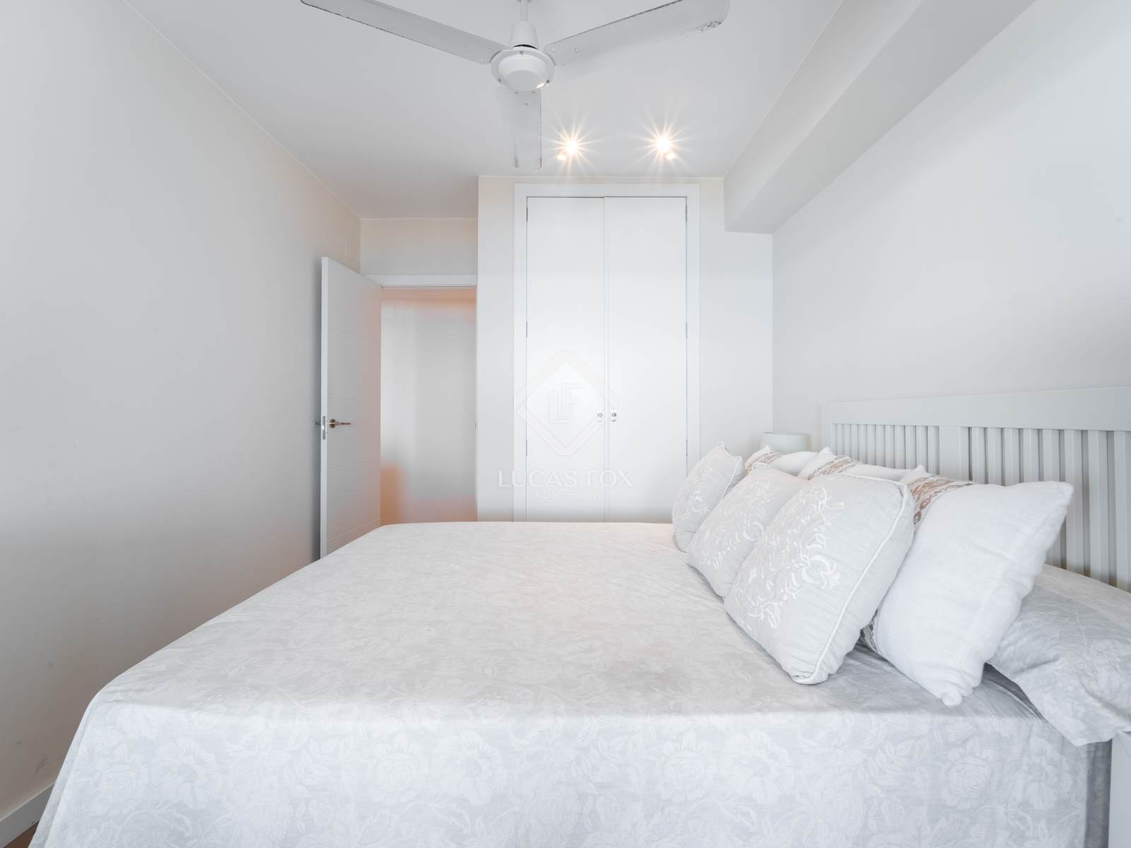 Die Wohnung ist durchdacht gestaltet und verfügt über drei Schlafzimmer, einen hellen, offenen Wohnbereich mit Küche. Zwei der Schlafzimmer sowie das Wohnzimmer bieten direkten Zugang zur großen Terrasse – der perfekte Ort zum Essen, Entspannen oder einfach nur, um die Geräusche und den Duft des Meeres zu genießen. Die Terrasse lässt sich mit Glasvorhängen komplett verschließen und kann so das ganze Jahr über komfortabel genutzt werden. Vom Hauptschlafzimmer und dem zweiten Schlafzimmer genießt man einen ungestörten Meerblick, während das Hauptschlafzimmer und das dritte Schlafzimmer über Einbauschränke für optimalen Komfort und Stauraum verfügen.