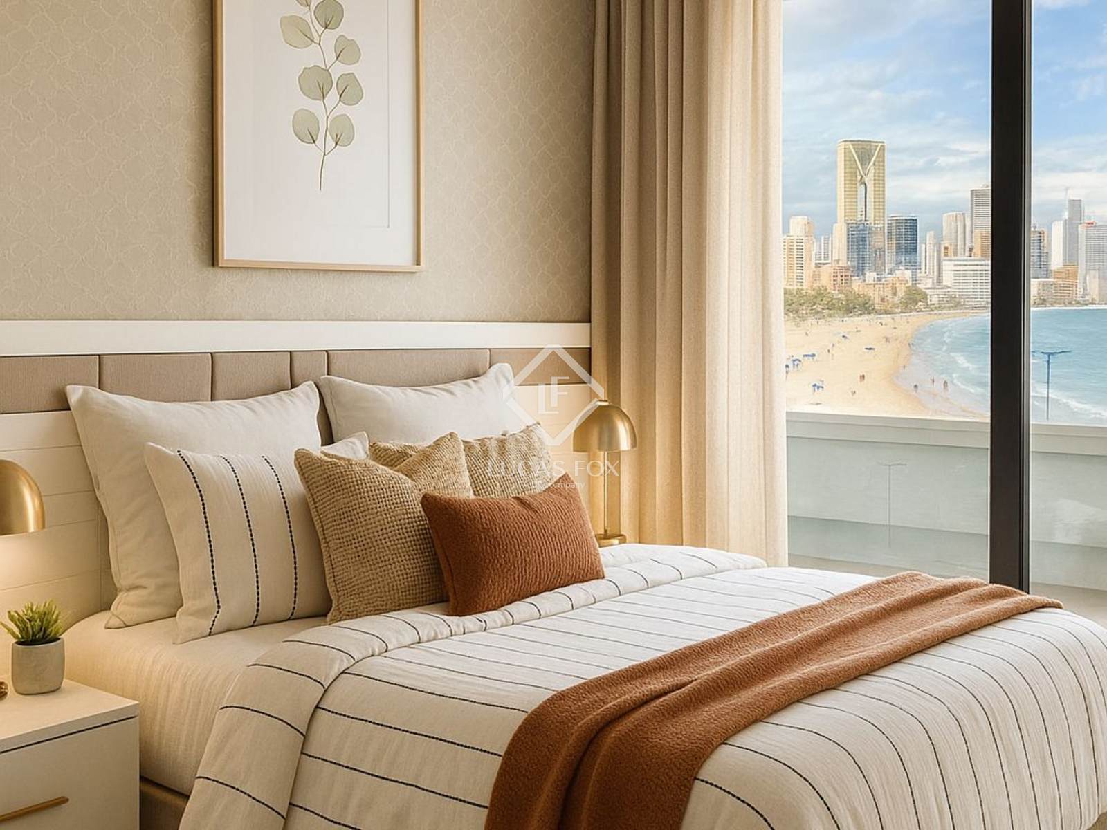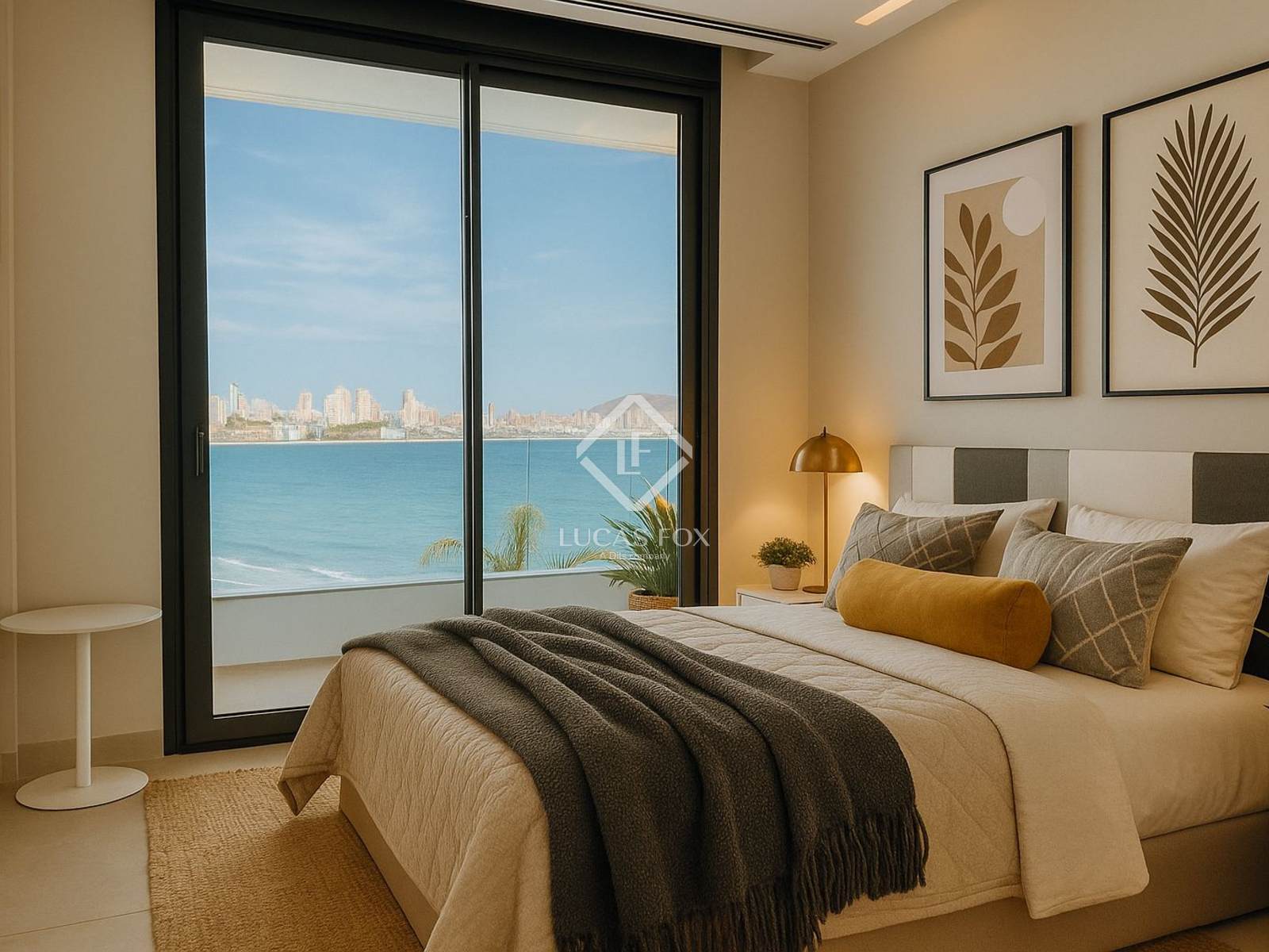 Hochwertige Ausstattung und Armaturen mit Fußbodenheizung, Parkplatz, Abstellraum und Pool direkt am Meer in Poniente Beach, Benidorm, Alicante.