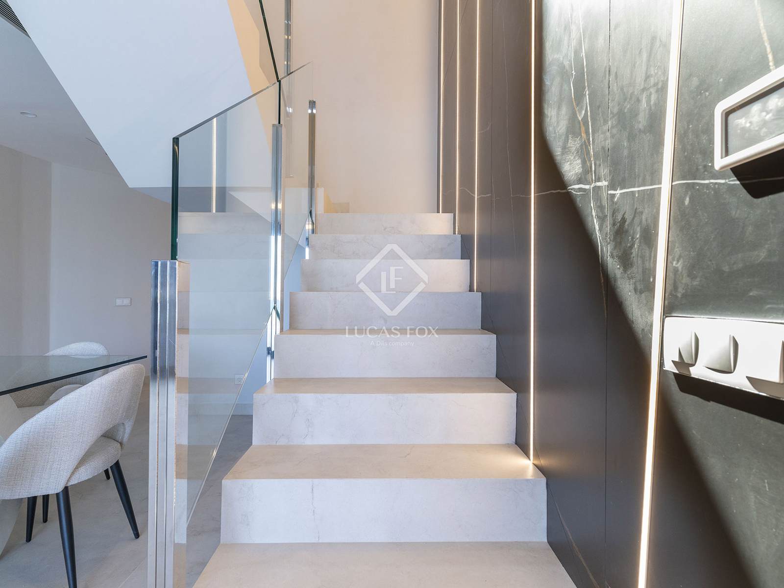 Dieses Duplex ist mit allem modernen Komfort ausgestattet. Die Fußbodenheizung sorgt das ganze Jahr über für angenehme Temperaturen, während die Klimaanlage mit Warm- und Kaltwasserkanälen zu jeder Jahreszeit optimale Klimatisierung bietet. Das integrierte Soundsystem im gesamten Haus und auf der Terrasse verleiht dem Haus einen Hauch von Eleganz und schafft die perfekte Atmosphäre für jeden Anlass.