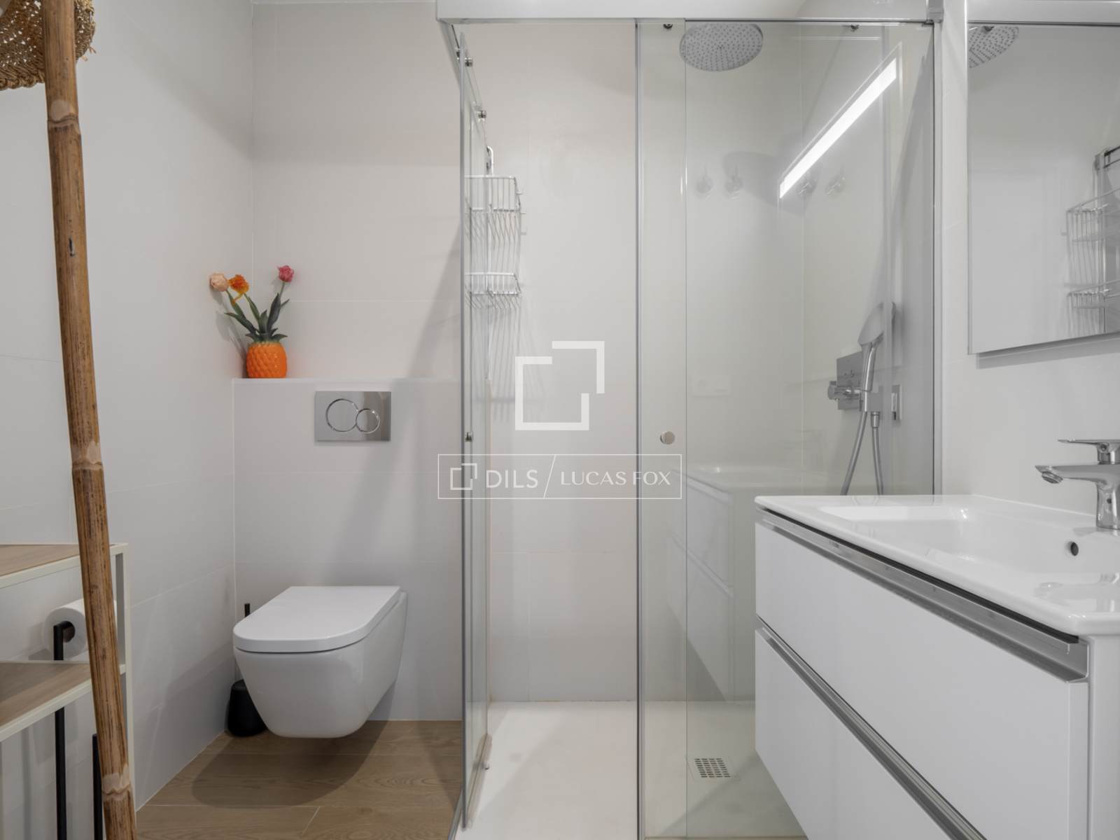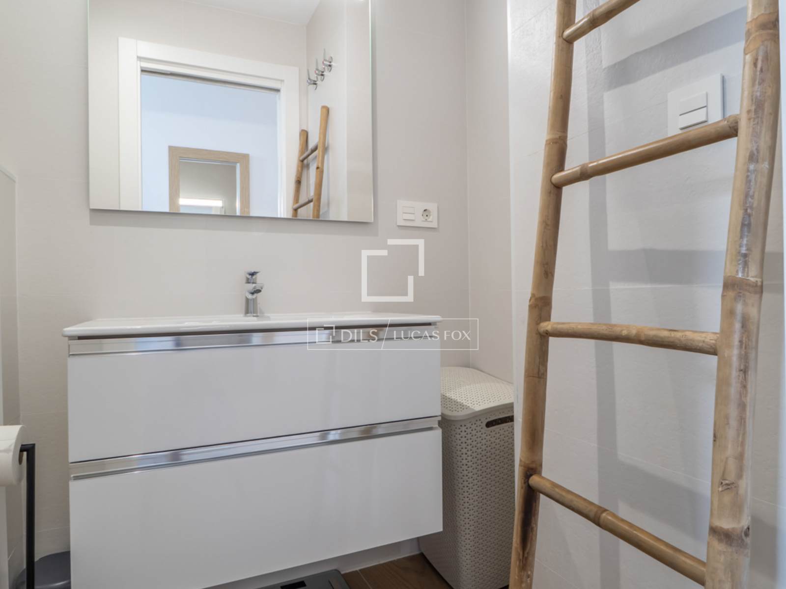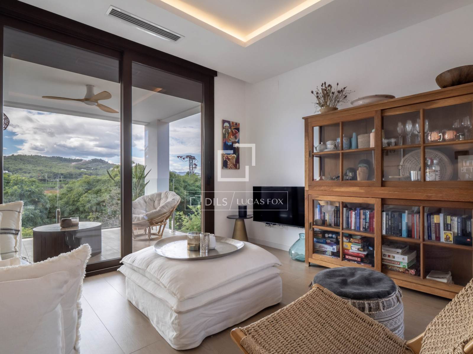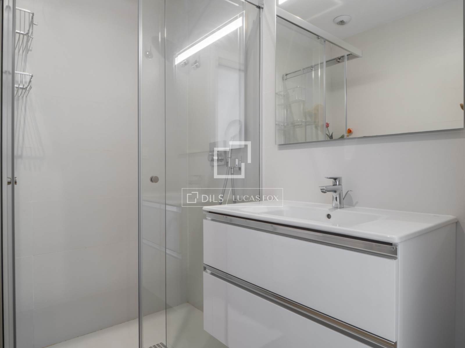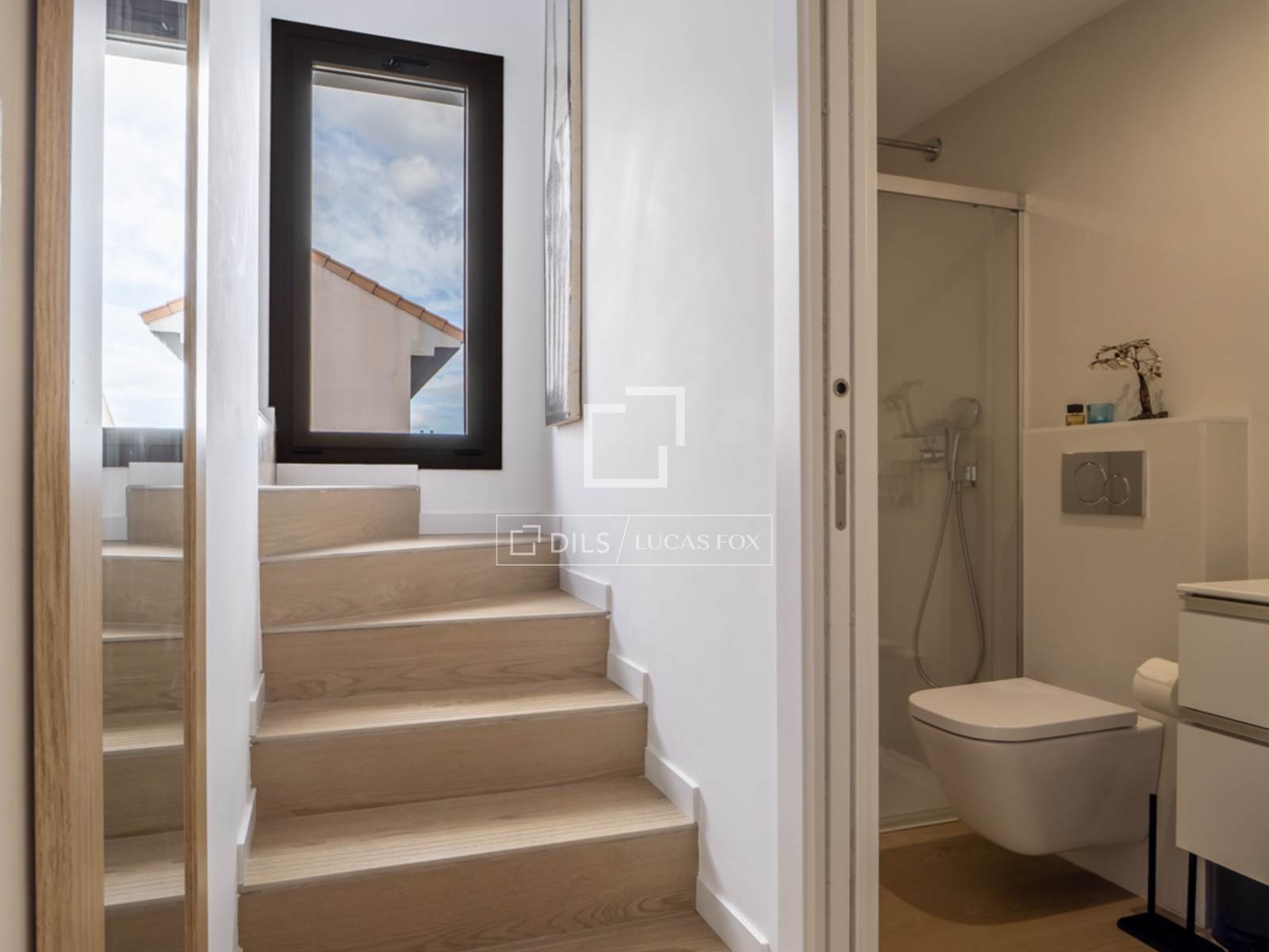 Die Wohnung ist ausgestattet mit Einbauschränken, einer zentralen Warm-/Kalt-Klimaanlage, Fußbodenheizung, elektrischen Rollläden, einer Wärmepumpe und einem privaten Parkplatz mit einem geräumigen Abstellraum in der Tiefgarage.