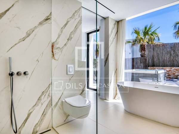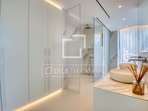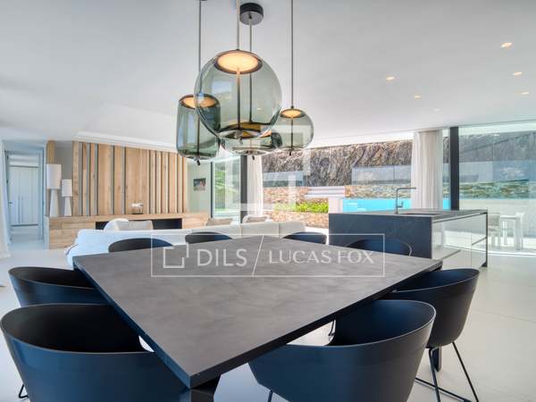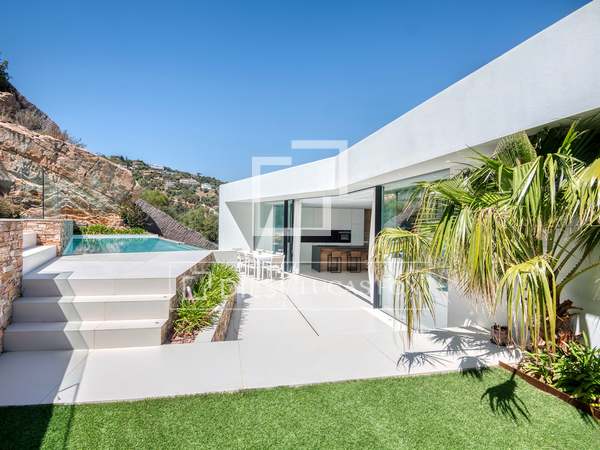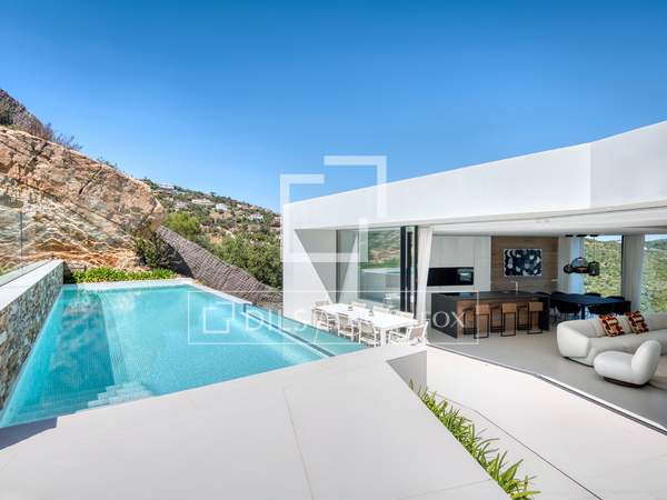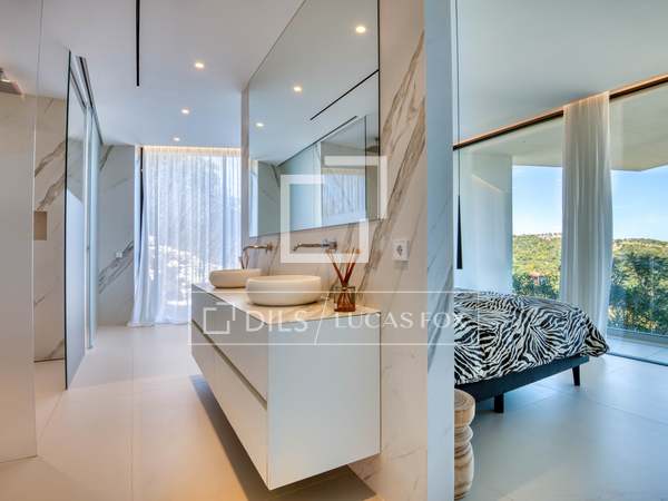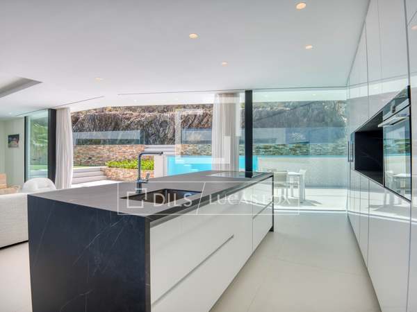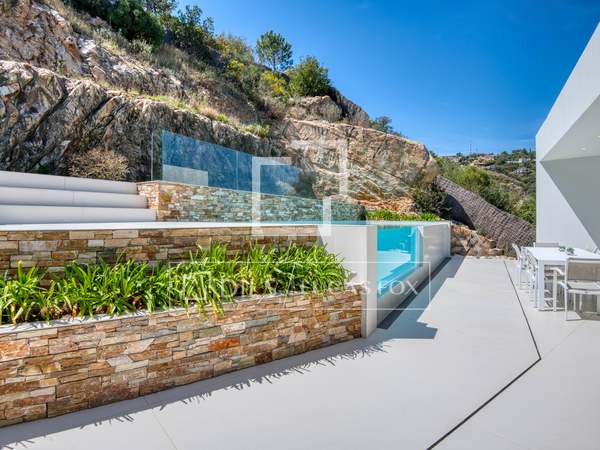 Dieses exklusive Einfamilienhaus mit 447 m² Wohnfläche befindet sich auf einem großzügigen Grundstück von 1.626 m². Es wurde 2019 renoviert und besticht durch sein elegantes Design, große Fenster, Bergblick und hochwertige Oberflächen wie Marmor- und Parkettböden.