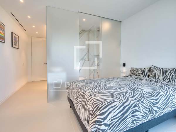 Im Obergeschoss befindet sich der Schlafbereich mit vier Schlafzimmern: einem Einzelzimmer, zwei Doppelzimmern und dem Hauptschlafzimmer mit eigenem Bad und Ankleideraum. Alle Schlafzimmer haben Zugang zum Außenbereich, entweder zu einem Balkon oder einer Terrasse, und verfügen über zwei zusätzliche Badezimmer.