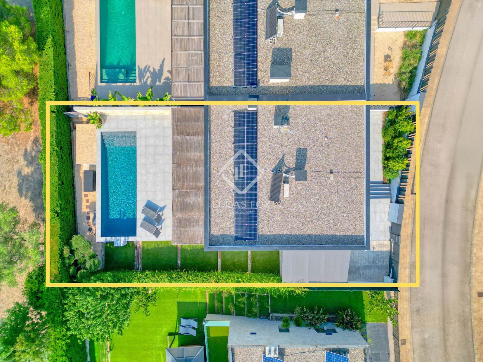 Das 2019 erbaute Gebäude besticht durch sein modernes und funktionales Design, das auf den Komfort des einstöckigen Wohnens ausgelegt ist, da es keine Treppen hat und die Nutzung des natürlichen Lichts maximiert. Die klaren Linien der Fassade und die Aluminiumrahmen mit Doppelverglasung verleihen ihm einen eleganten und effizienten Stil.