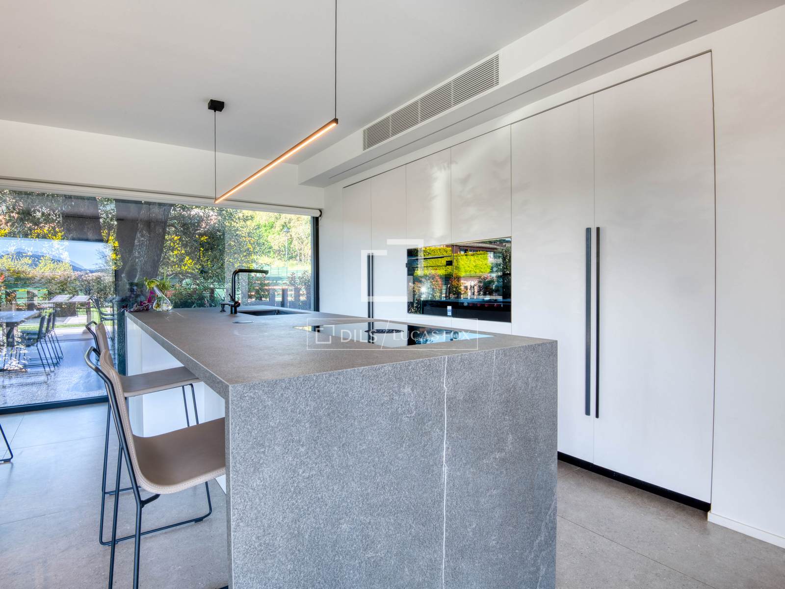 — Untergeschoss: große Garage mit Platz für mehrere Fahrzeuge, Fitnessbereich, Waschküche und großer Mehrzweckraum, der sich ideal als Spielzimmer, Kino oder Freizeitbereich eignet.