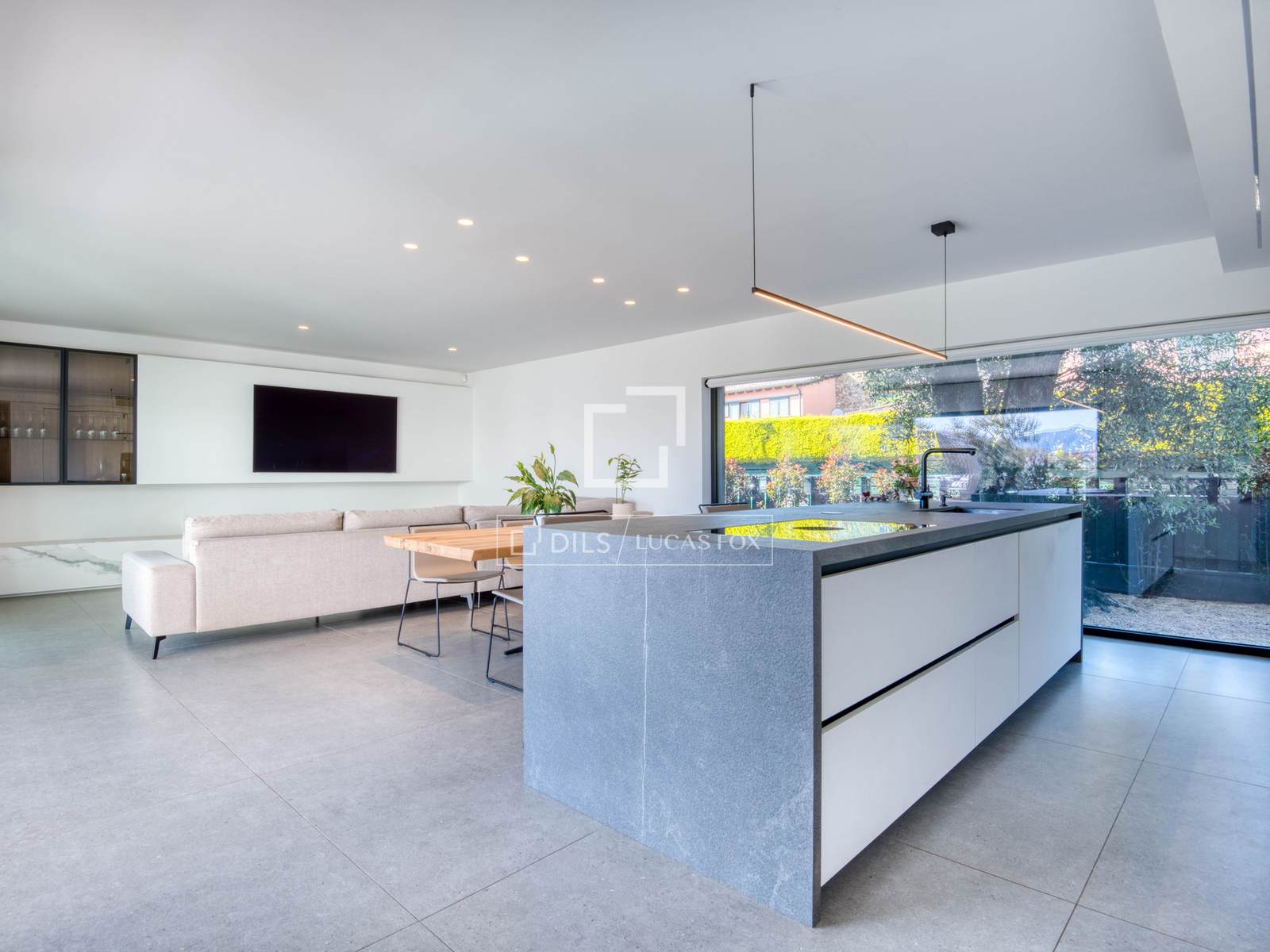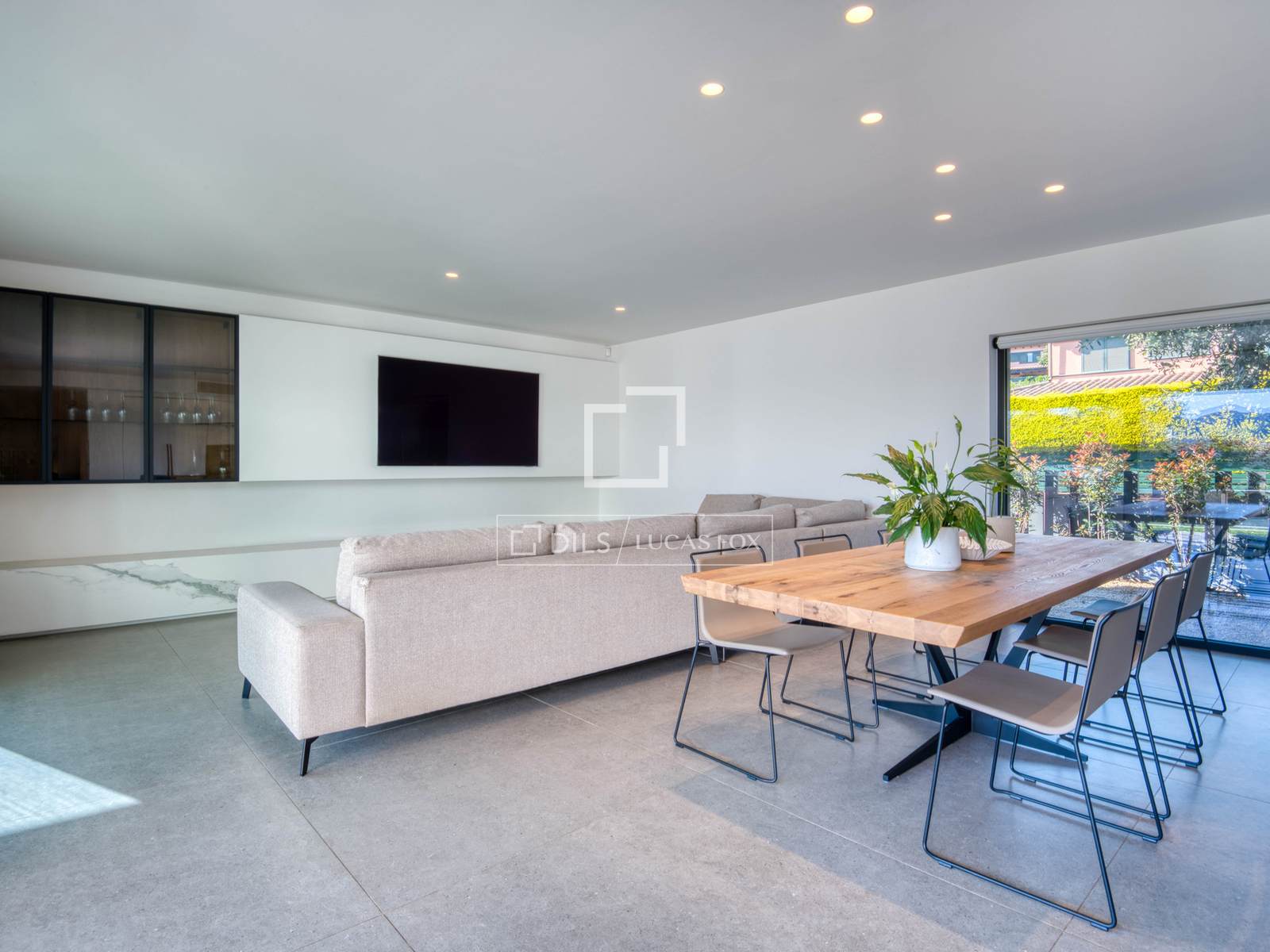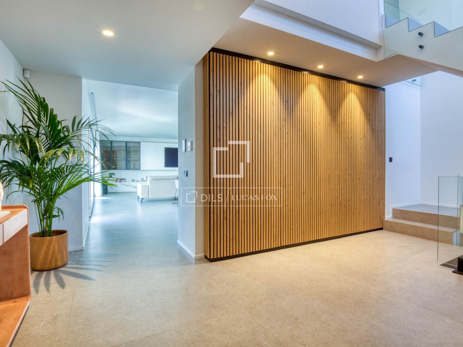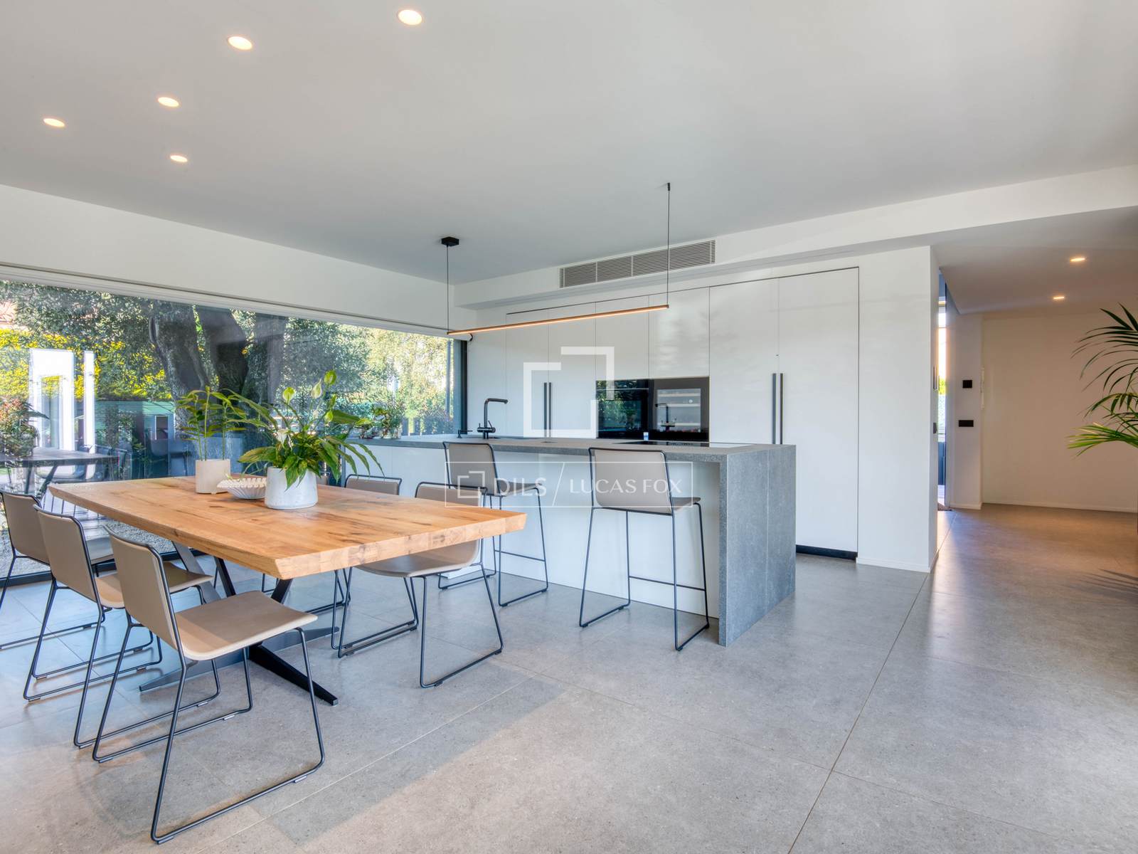 Im Erdgeschoss führt eine elegante und geräumige Eingangshalle in einen beeindruckenden, offenen Wohn- und Essbereich mit integrierter Küche. So entsteht ein moderner und stilvoller Raum mit direktem Zugang zum Garten. Die Verbindung zwischen Innen- und Außenbereich ist fließend und natürlich, sodass Sie den spektakulären, ebenen und sonnigen Garten mit seinem großen privaten Salzwasserpool in vollen Zügen genießen können.