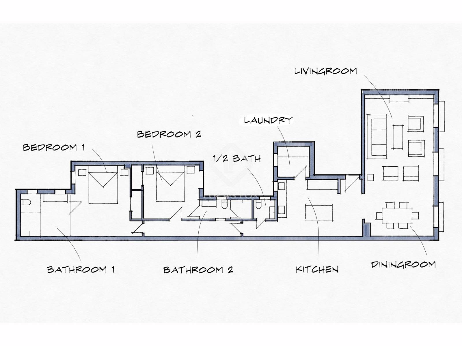 Das Anwesen verfügt über zwei einladende Schlafzimmer, jeweils mit eigenem Badezimmer, die sich durch ein modernes und funktionales Design auszeichnen. Das Hauptbadezimmer besticht durch seine zeitgemäße Ausstattung und Funktionalität.