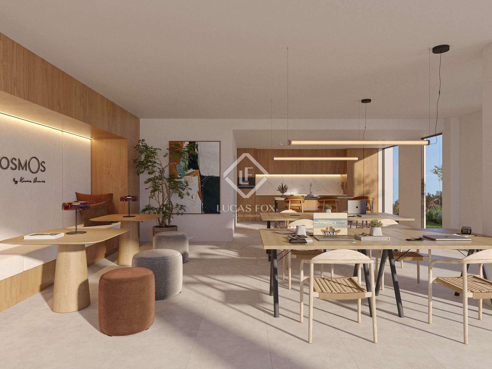 Kosmos bietet großzügige Gemeinschaftsräume, darunter zwei Schwimmbecken (eines davon beheizt), ein Spa, ein Fitnessstudio und einen Coworking-Bereich mit Büroküche – Räumlichkeiten, die soziale Interaktion, Entspannung und einen aktiven Lebensstil fördern sollen.