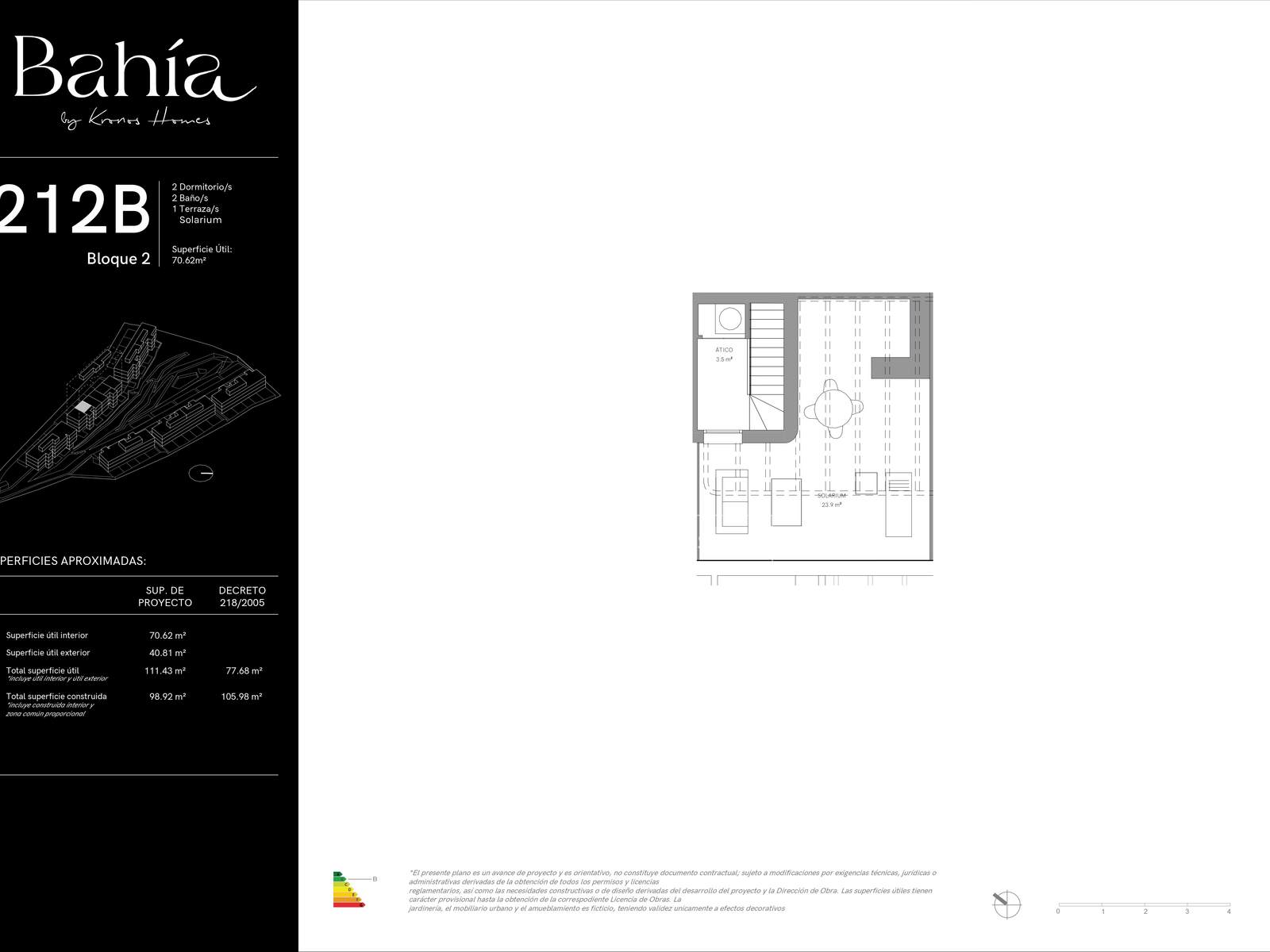 Bahia besteht aus 108 Wohnungen, verteilt auf sechs separate, modern gestaltete, weiße Wohnblöcke mit sonniger Ausrichtung. Dieses besondere Penthouse bietet eine Wohnfläche von 71 m² und insgesamt 41 m² private Terrasse und Dachterrasse. Die Wohnung verfügt über einen offenen Wohn-Essraum mit Küche, zwei Schlafzimmer und zwei Badezimmer. Bodentiefe Fenster maximieren die Aussicht und das natürliche Licht und lassen täglich Sonne und die herrliche Landschaft der Costa del Sol in die Wohnung.