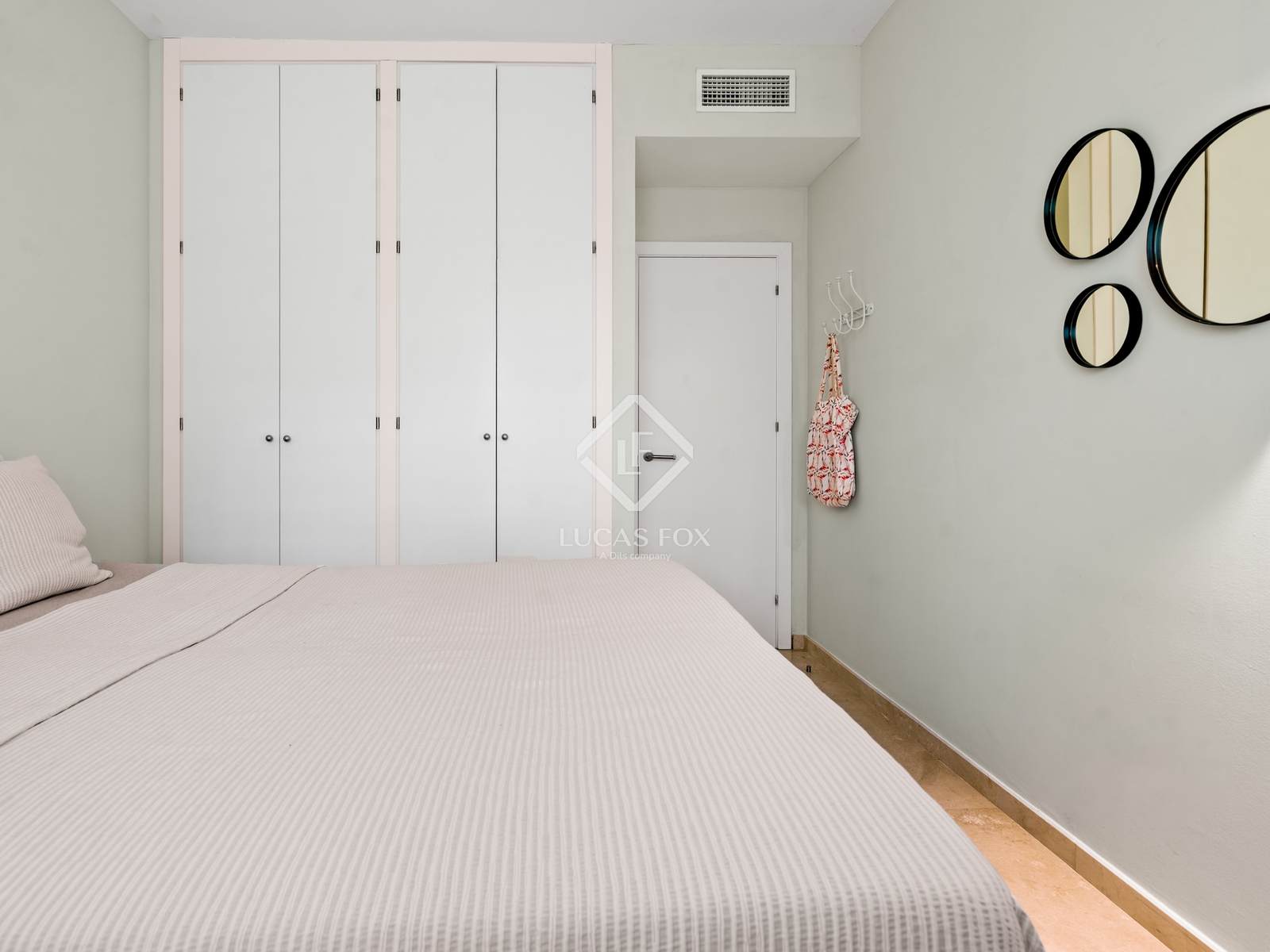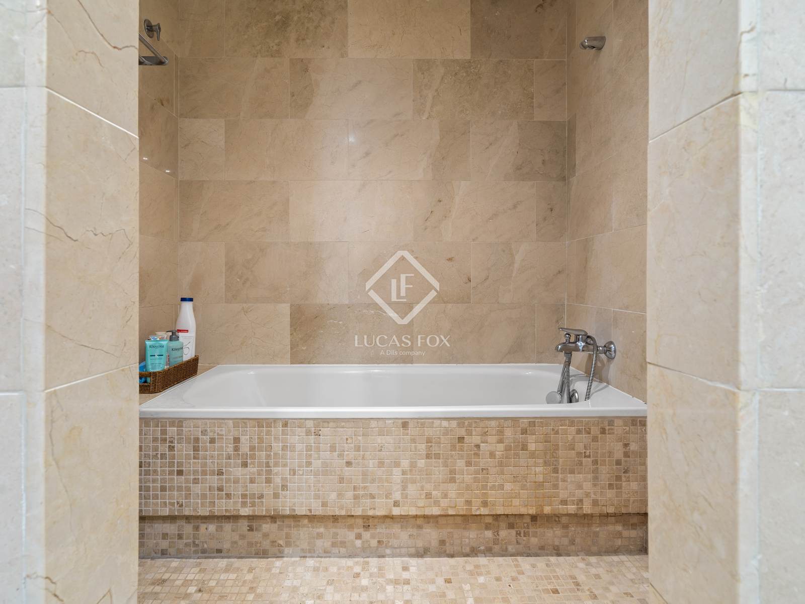 Die Wohnung bietet 121 m² Wohnfläche inklusive einer 21 m² großen Terrasse. Kürzlich mit hochwertigen Materialien renoviert, präsentiert sie sich voll möbliert und bezugsfertig. Der zeitlose Marmorboden unterstreicht das elegante Ambiente.
