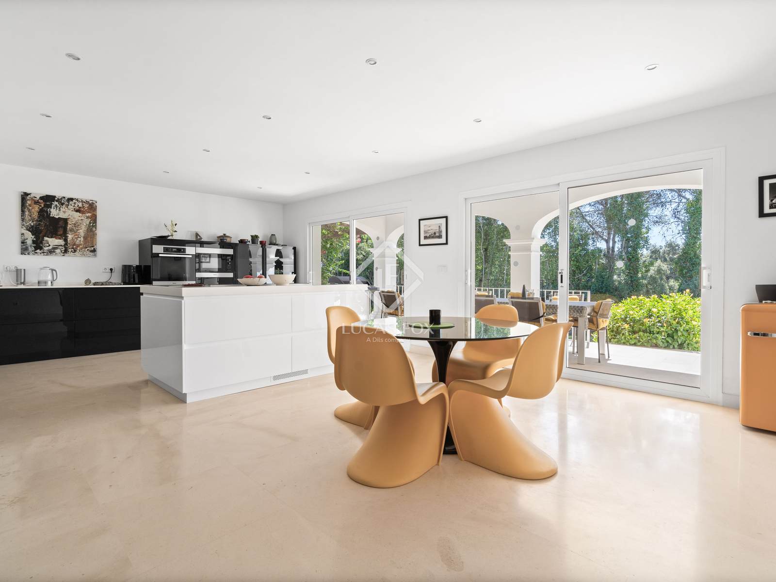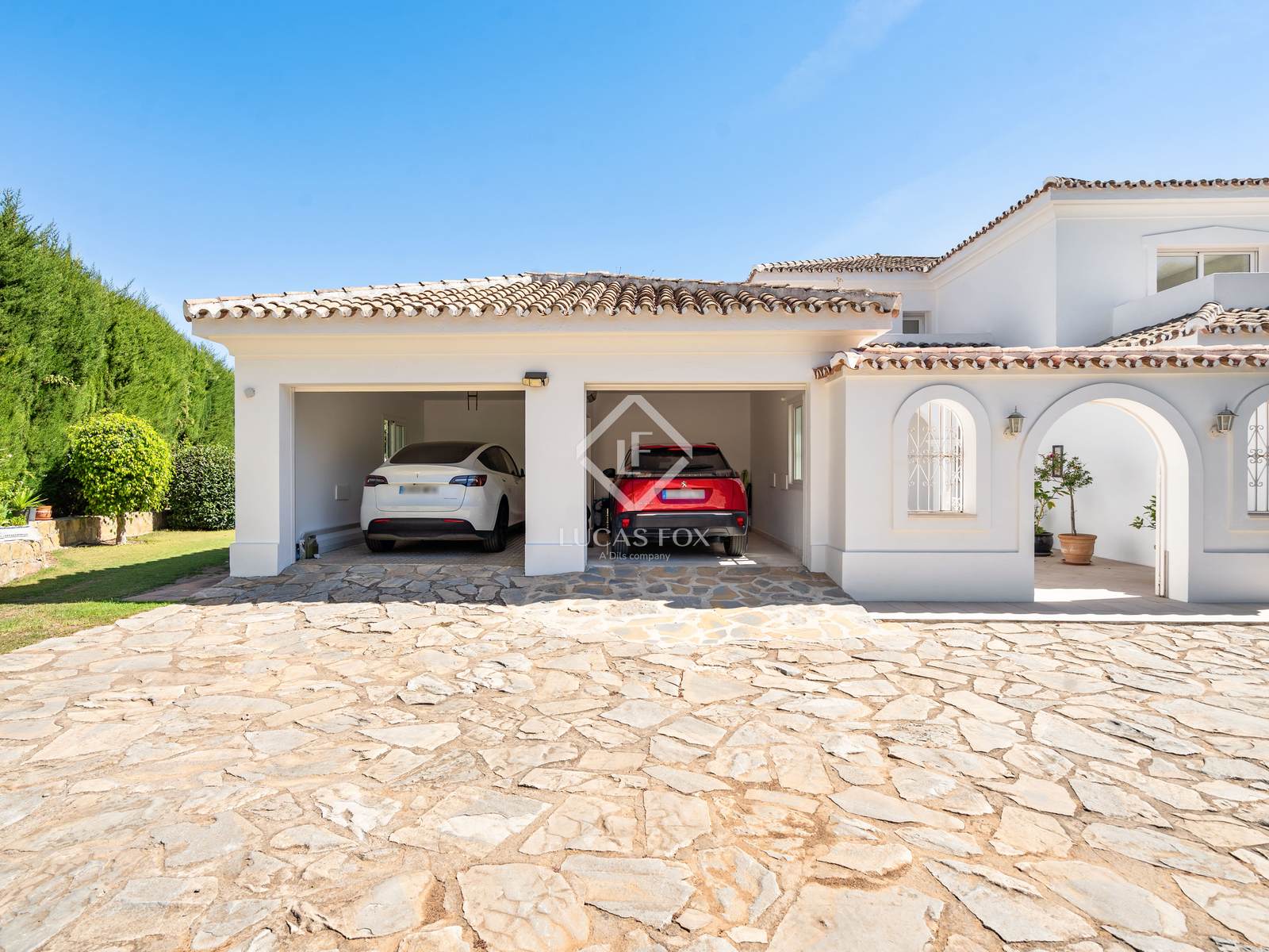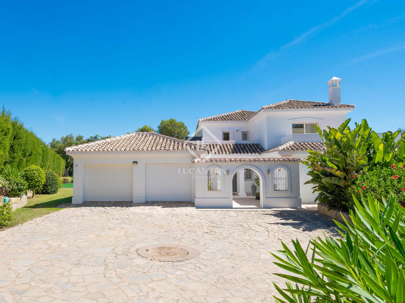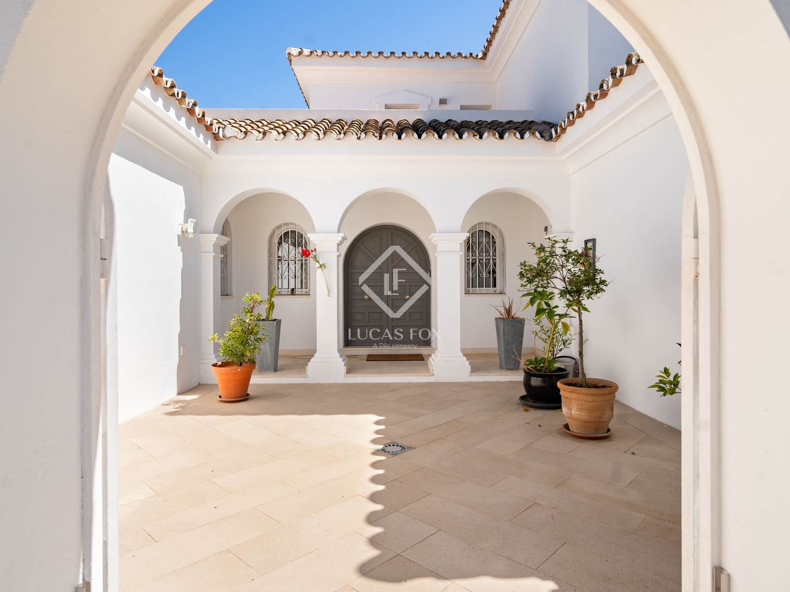 Lucas Fox präsentiert diese exklusive 583 m² große Villa zum Verkauf neben dem Golfplatz Valderrama in der Stadt Sotogrande. Die Villa kombiniert ein traditionelles andalusisches Äußeres mit einem modernen und eleganten Interieur, das von ihren derzeitigen Eigentümern komplett renoviert wurde.
