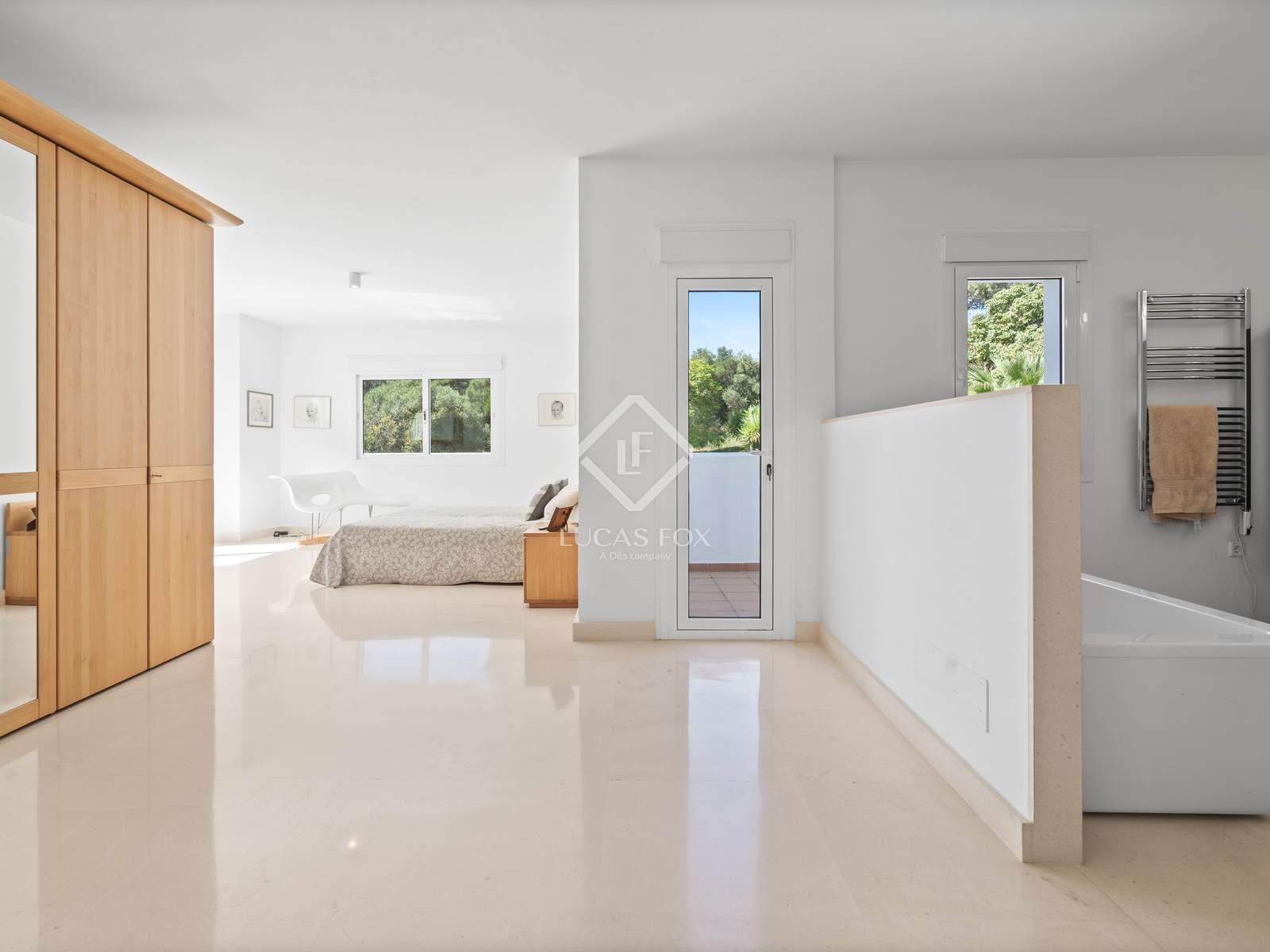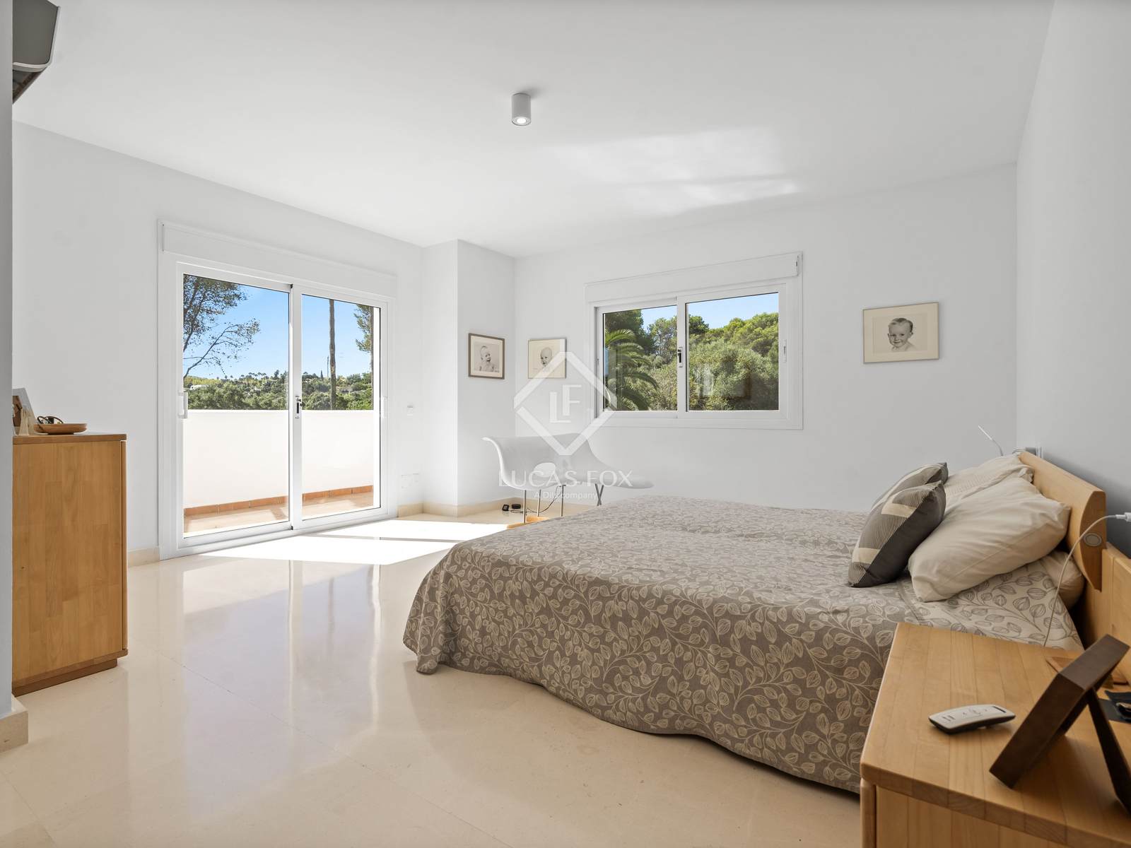Der Schlafbereich befindet sich im Obergeschoss. Das geräumige Hauptschlafzimmer besticht durch sein offenes En-Suite-Badezimmer, elektrische Rollläden und Zugang zu zwei privaten Terrassen mit einzigartigem Blick auf das 14. Loch von Valderrama. Auf dieser Ebene befinden sich außerdem zwei weitere Schlafzimmer, die sich ein voll ausgestattetes Badezimmer und eine Terrasse mit derselben spektakulären Aussicht teilen.