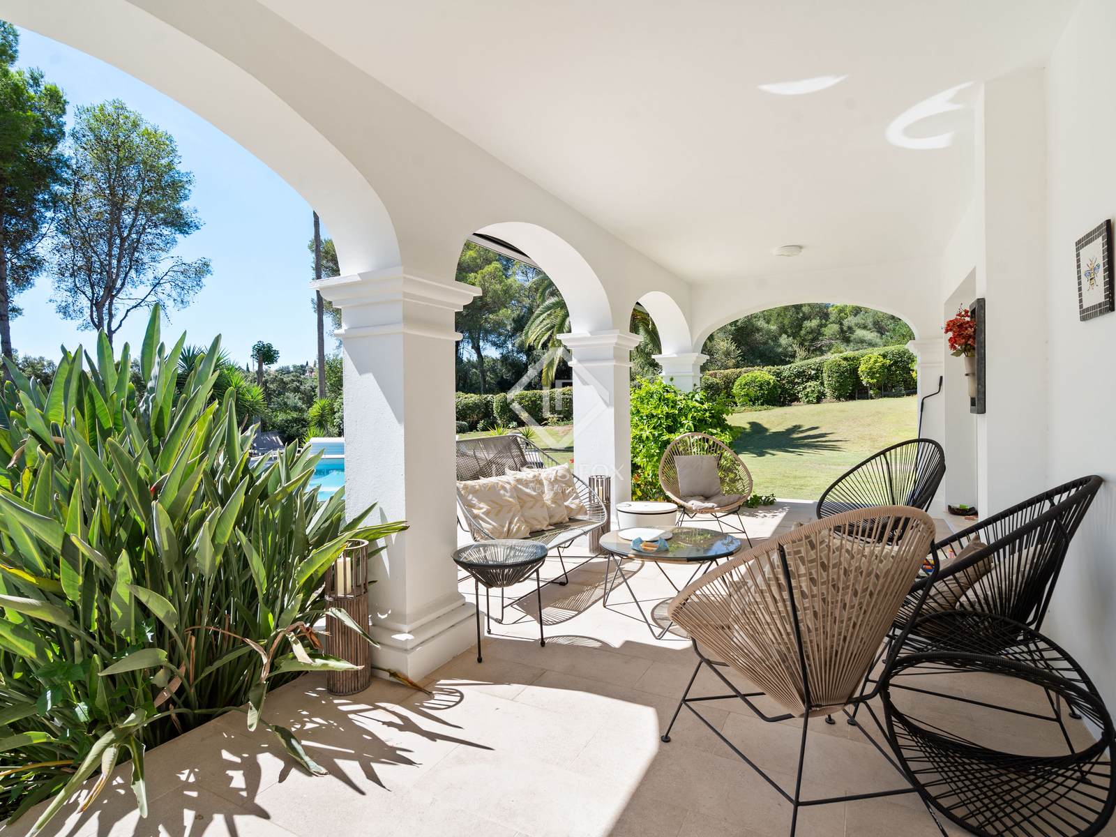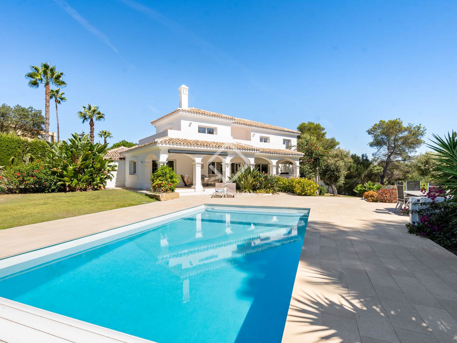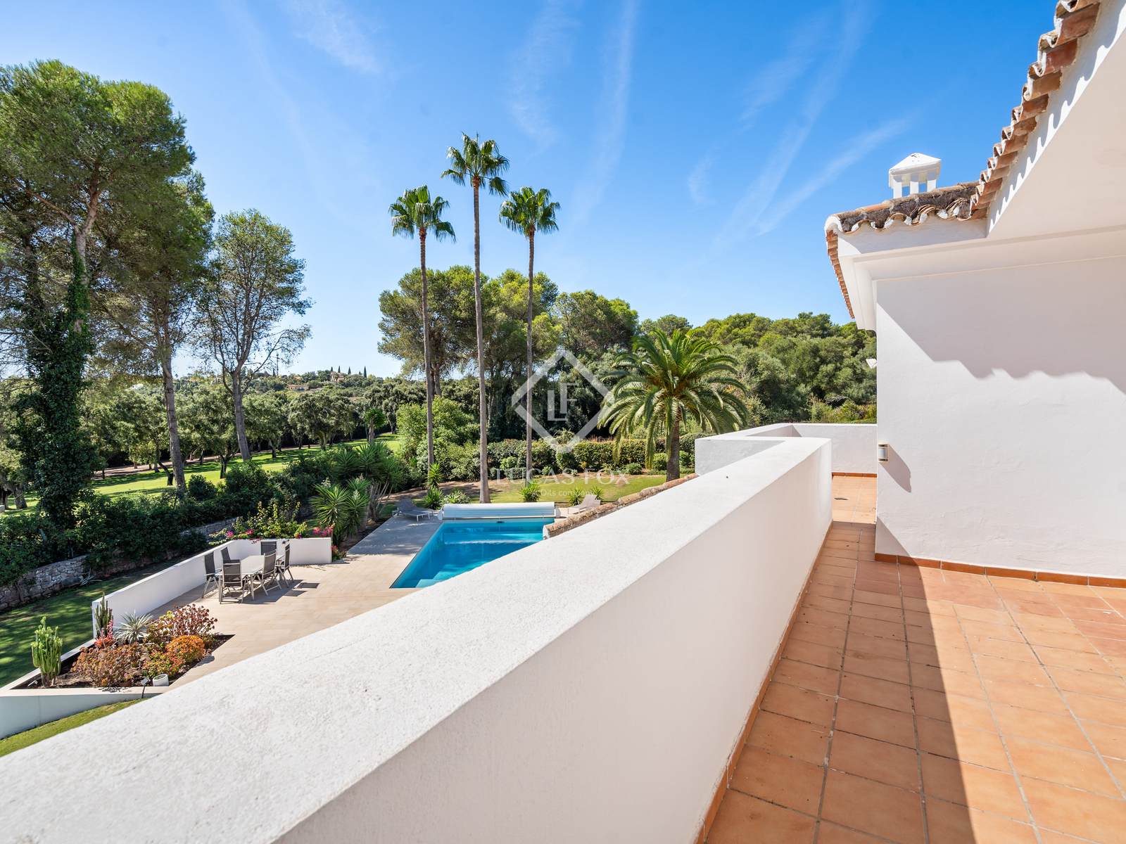 Exklusive renovierte Villa im andalusischen Stil mit 583 m² Wohnfläche auf zwei Etagen und 4 geräumigen Schlafzimmern auf einem 4.153 m² großen Grundstück mit privilegiertem Blick auf das 14. Loch des renommierten Golfplatzes Valderrama zum Verkauf in Sotogrande.