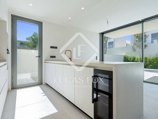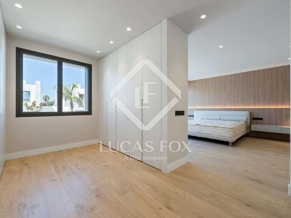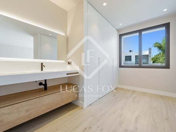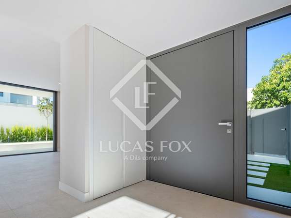 Beim Betreten der Villa gelangt man über eine elegante Eingangshalle in ein geräumiges Wohn-Esszimmer mit offener Küche, die mit Geräten ausgestattet ist. Dieser offene Raum genießt viel Tageslicht und öffnet sich nach außen, wo sich eine schöne Terrasse befindet, die mit dem weitläufigen Garten und Pool verbunden ist – ideal, um das mediterrane Klima zu jeder Jahreszeit zu genießen. Eine separate Waschküche, ein Badezimmer, ein Doppelschlafzimmer und eine private Garage vervollständigen das Erdgeschoss. Das Obergeschoss verfügt über drei Doppelschlafzimmer, eines davon mit Ankleideraum, eigenem Bad und Terrasse.