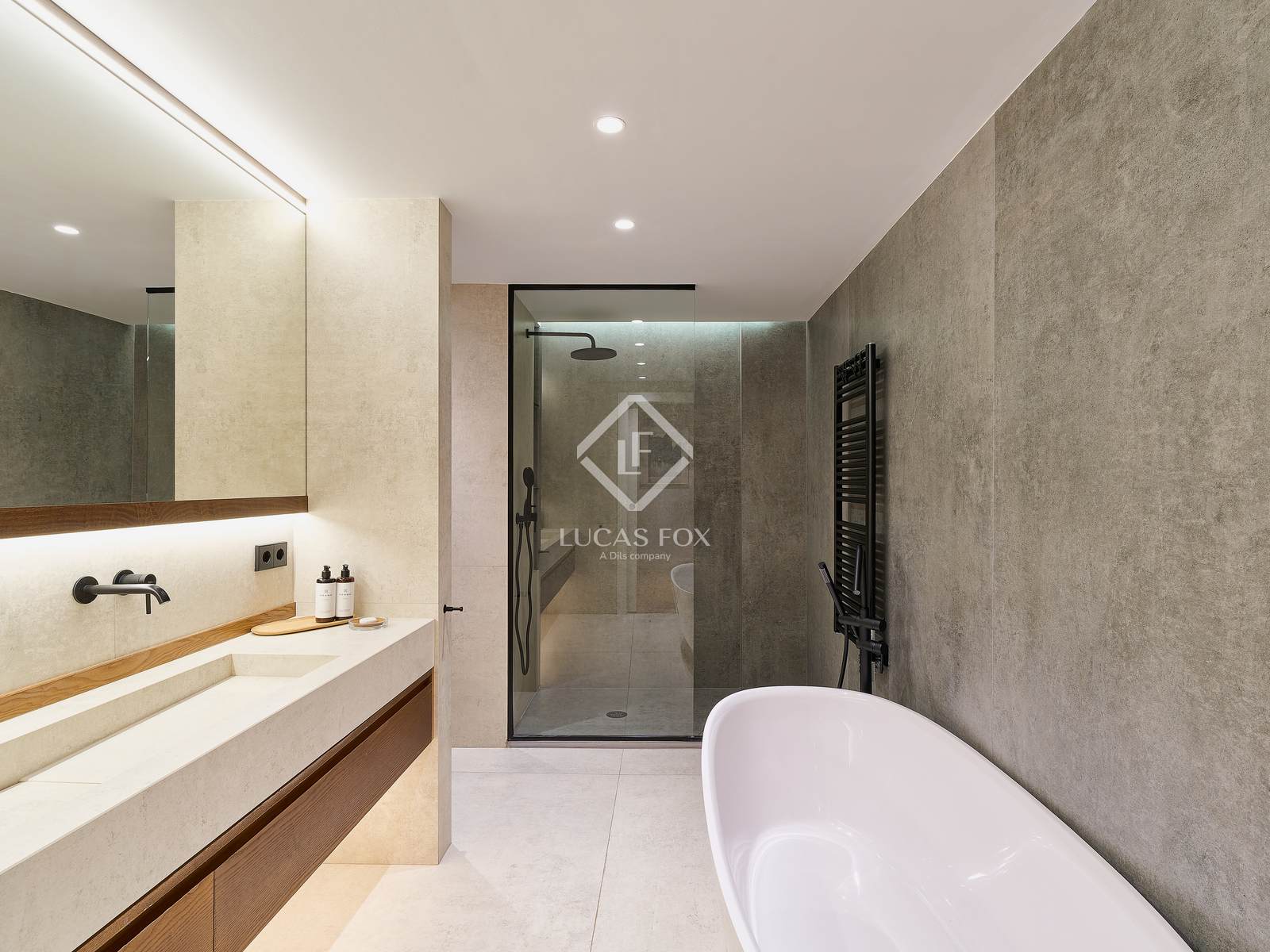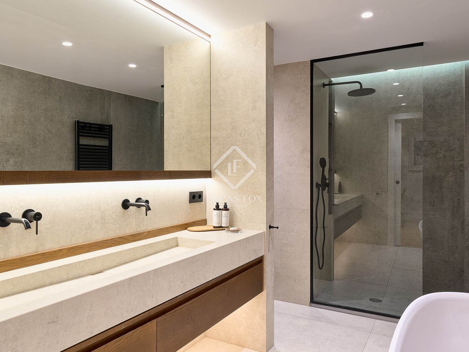 Zu den Ausstattungsmerkmalen gehören Hongrie Point Parkettböden, großformatige Porzellanfliesen von Cosentino, Badezimmer von Roca sowie maßgefertigte Schreinerarbeiten und Möbel. Das Haus verfügt außerdem über eine Klimaanlage (warm/kalt), elektrische Jalousien, maßgefertigte Vorhänge und ein sorgfältig geplantes Beleuchtungssystem, das Designerleuchten mit stimmungsvoller LED-Beleuchtung kombiniert.