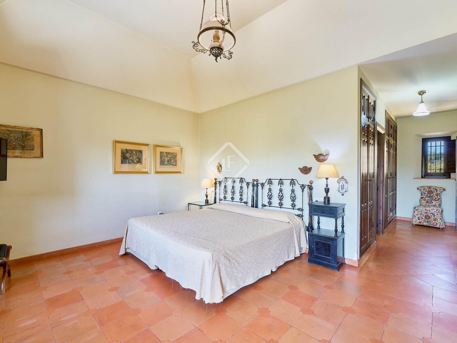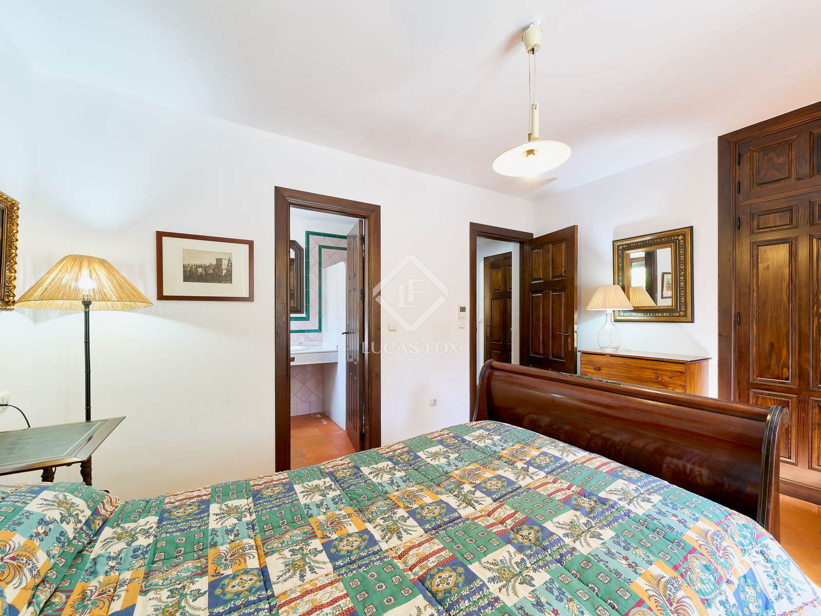 Der Schlafbereich umfasst fünf geräumige Doppelzimmer, alle mit Blick nach außen und durchdacht gestaltet. Das große Hauptschlafzimmer verfügt über ein Ankleidezimmer und ein eigenes Badezimmer. Die übrigen Schlafzimmer sind im mediterranen Stil mit handgefertigten Einbauschränken eingerichtet und werden durch mehrere Badezimmer ergänzt. Abgerundet wird das Raumangebot durch eine Speisekammer, einen Wasch- und Bügelbereich sowie ein großes Personalzimmer mit eigenem Bad und separatem Eingang.