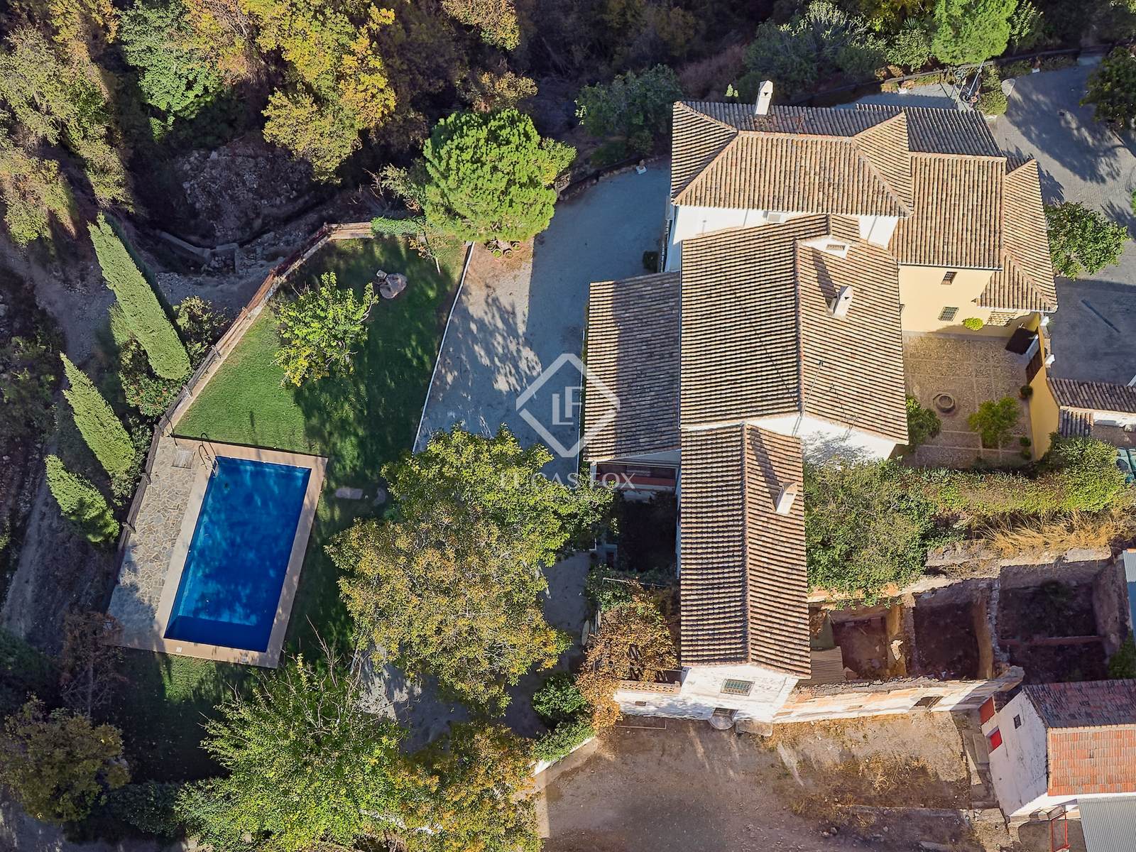 Das Anwesen umfasst im Außenbereich vier Hektar mit Gärten, Waldflächen und ertragreichen Olivenhainen. Zudem verfügt es über eine eigene Quelle und einen Brunnen, die zur Bewässerung und Instandhaltung genutzt werden.