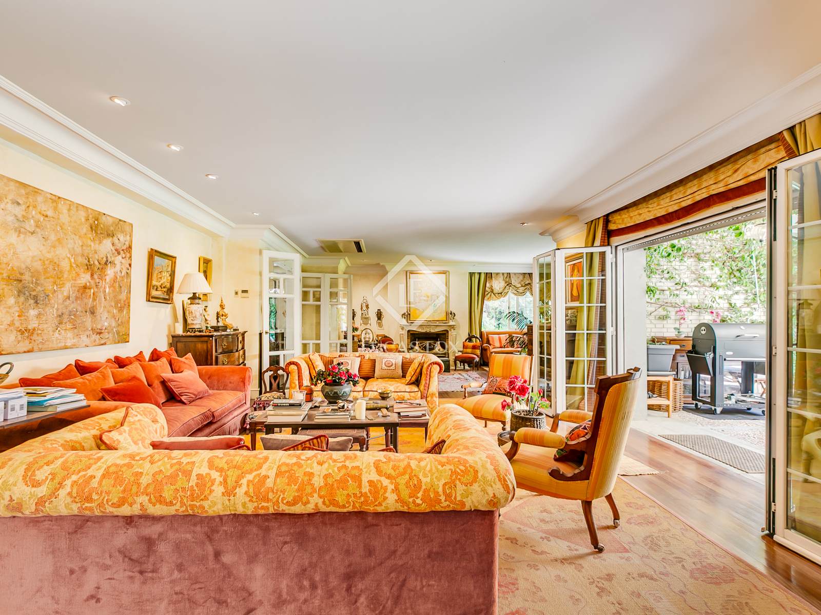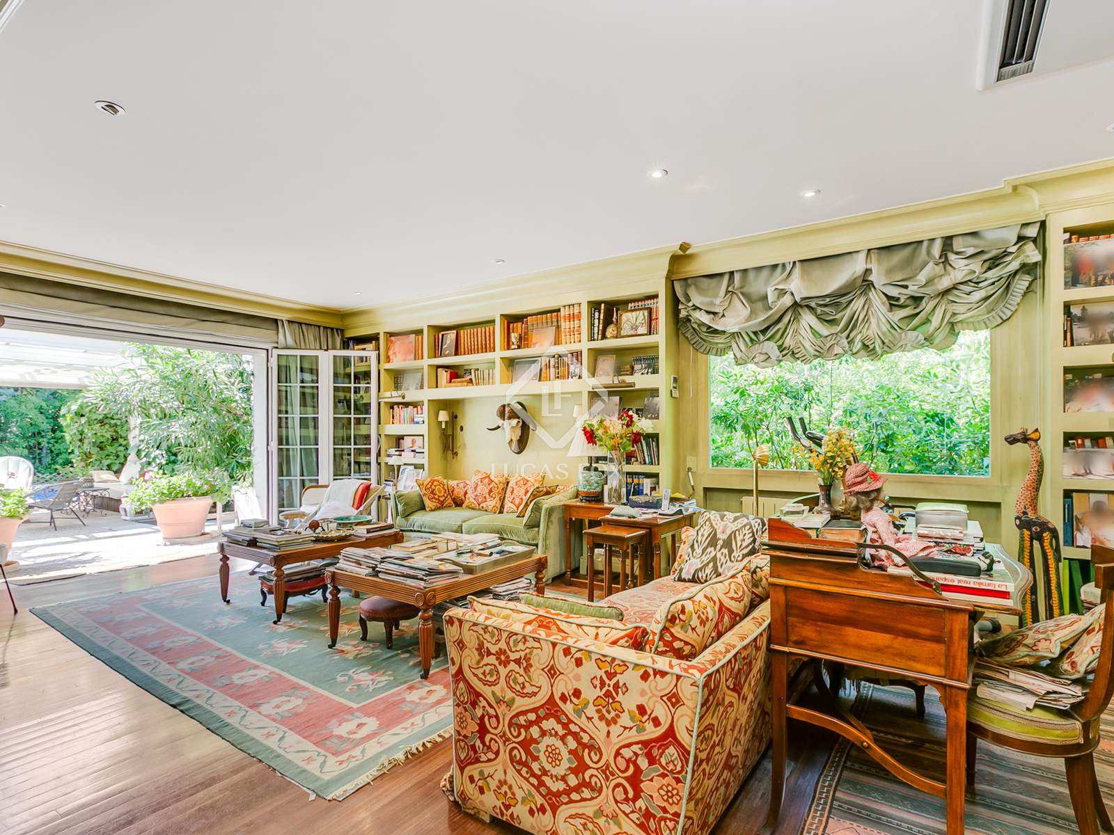 Im Erdgeschoss führt eine elegante Eingangshalle zu einem geräumigen Wohnzimmer mit Kamin und verschiedenen Räumen, verbunden mit einem separaten Esszimmer und einer gemütlichen Sitzecke und Bibliothek. Alle diese Räume öffnen sich über mehrere Veranden nach außen, die zu einem spektakulären, üppigen Garten mit wunderschöner Vegetation, einem Swimmingpool und einem Whirlpool führen.