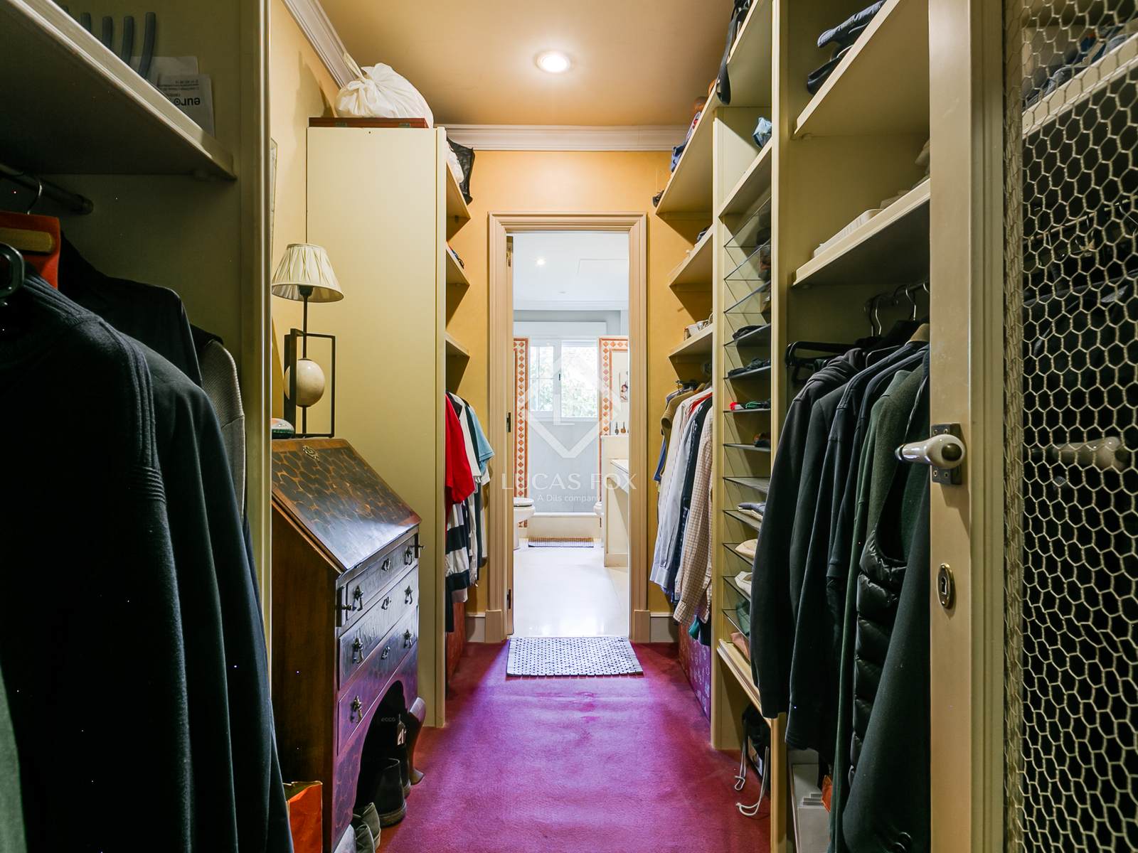 Auf dieser Etage befindet sich auch die großzügige Master-Suite , die maximalen Komfort bietet, da kein Treppensteigen erforderlich ist. Dieser Raum bietet direkten Zugang zu den Wohnräumen und eine private Veranda mit Blick auf den Garten – eine wahre Oase der Ruhe. Sie verfügt über ein elegantes Bad en suite und zwei große begehbare Kleiderschränke, die Privatsphäre und Funktionalität in einem Raum vereinen.