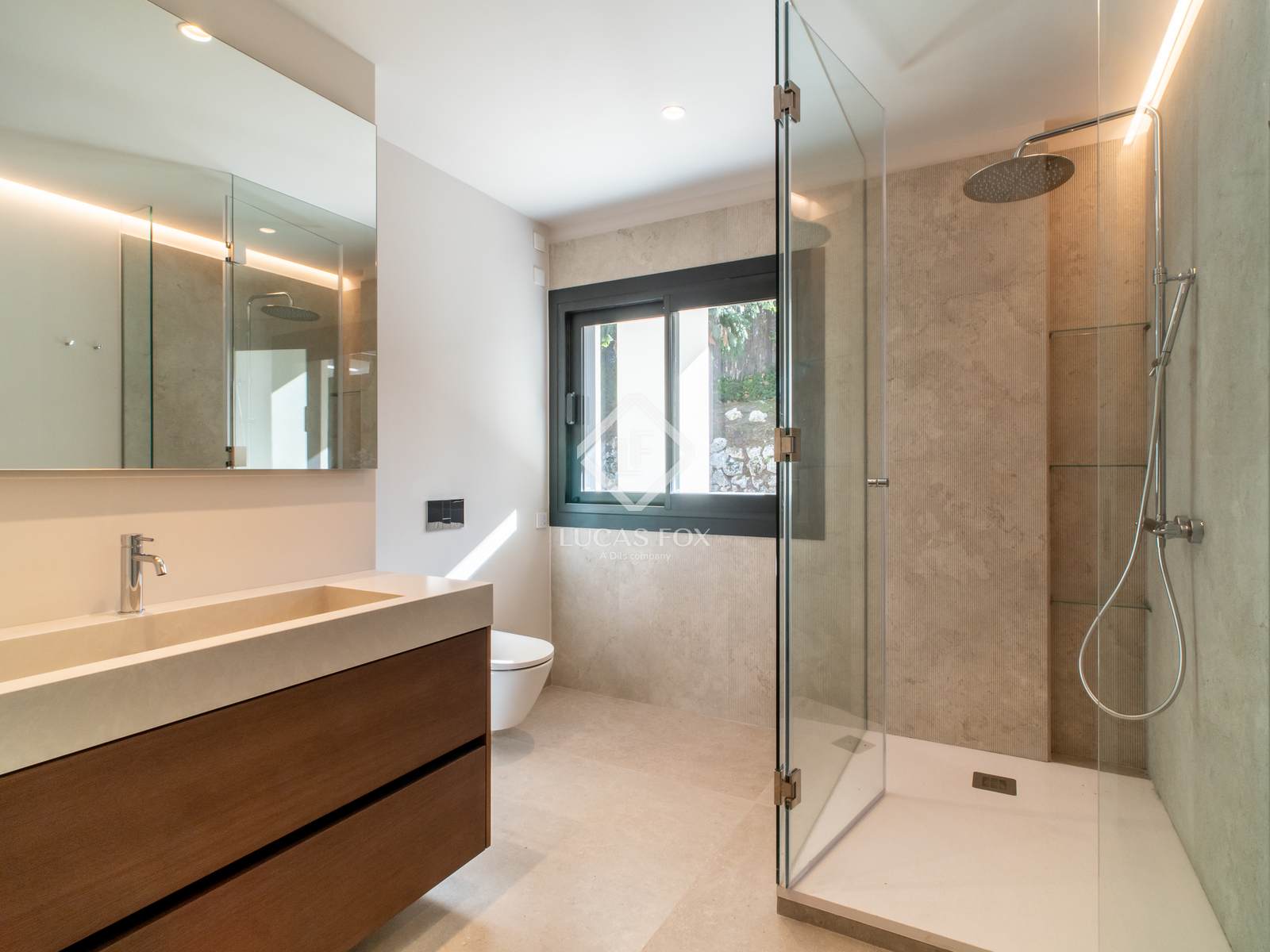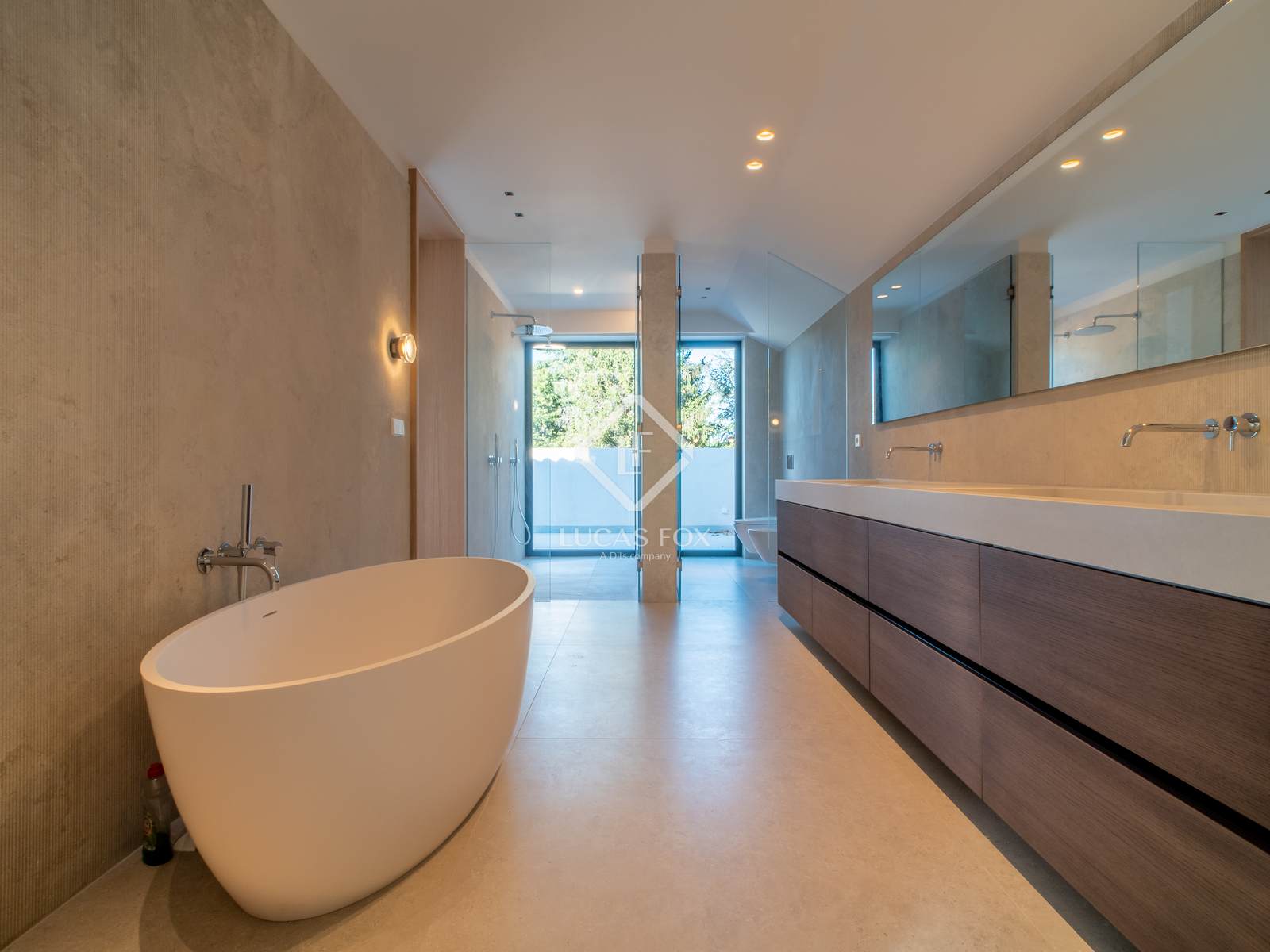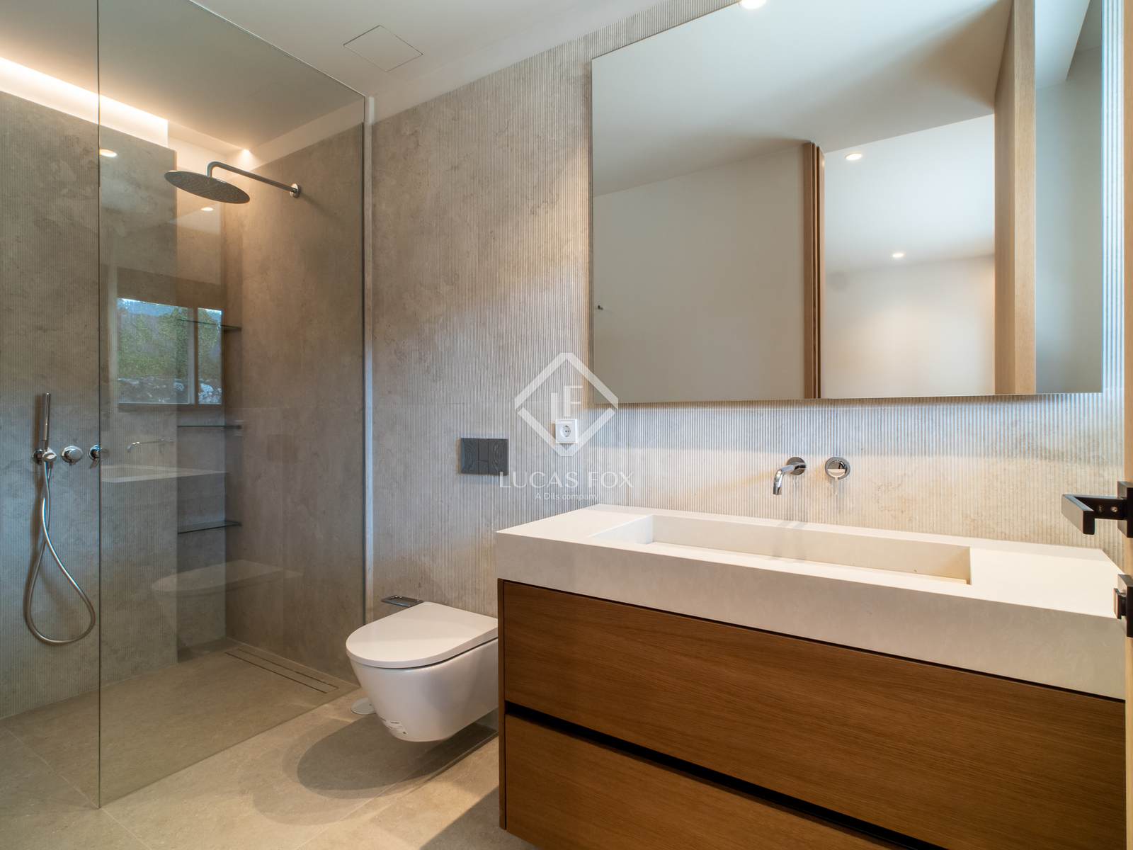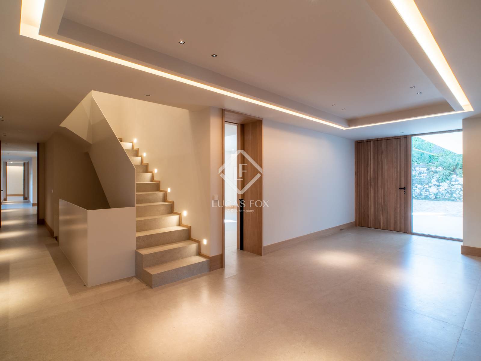 Im Untergeschoss befindet sich ein spektakulärer Unterhaltungsraum mit Kino, Bar und Billard, ein moderner Fitnessraum, ein komplettes Badezimmer und eine große Garage mit Platz für mehrere Fahrzeuge.
