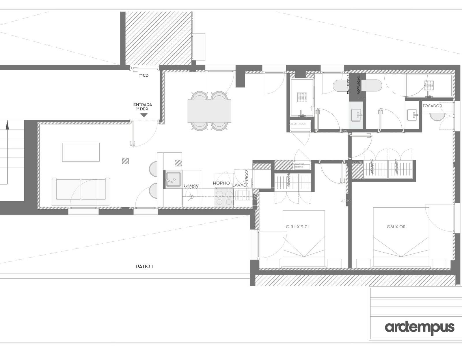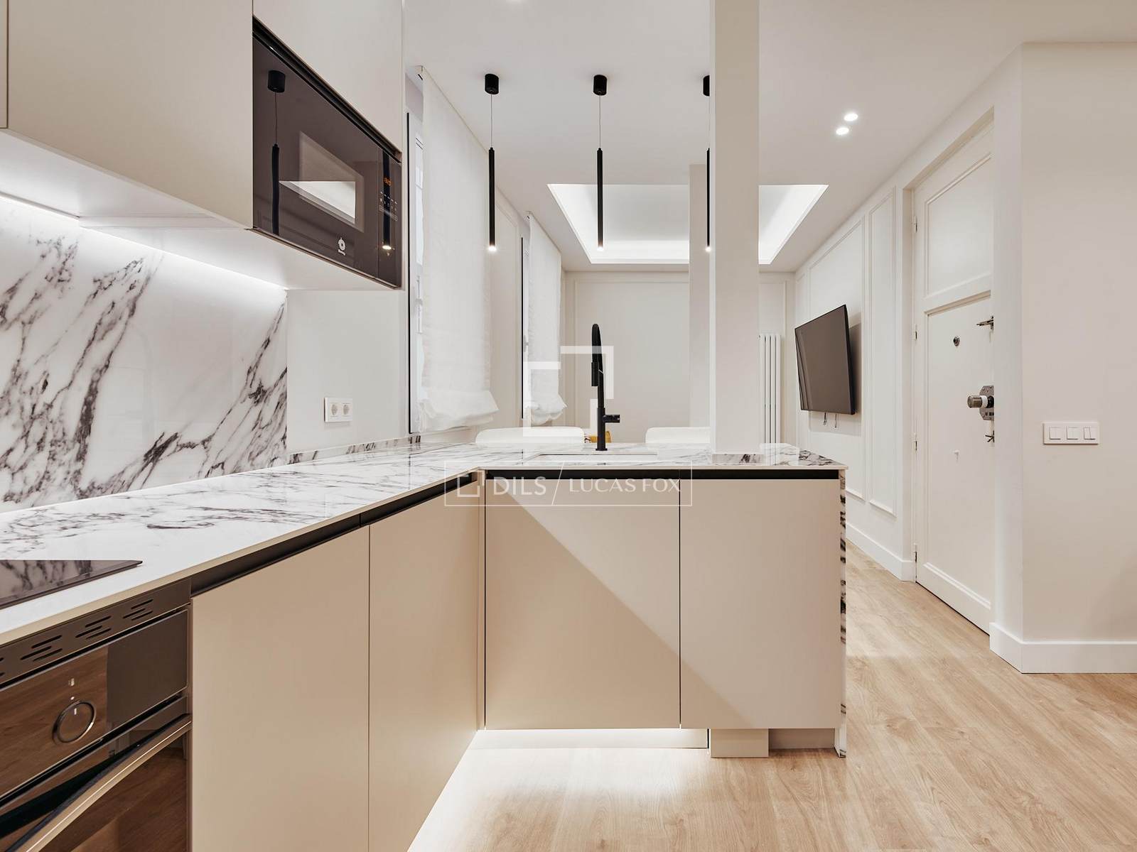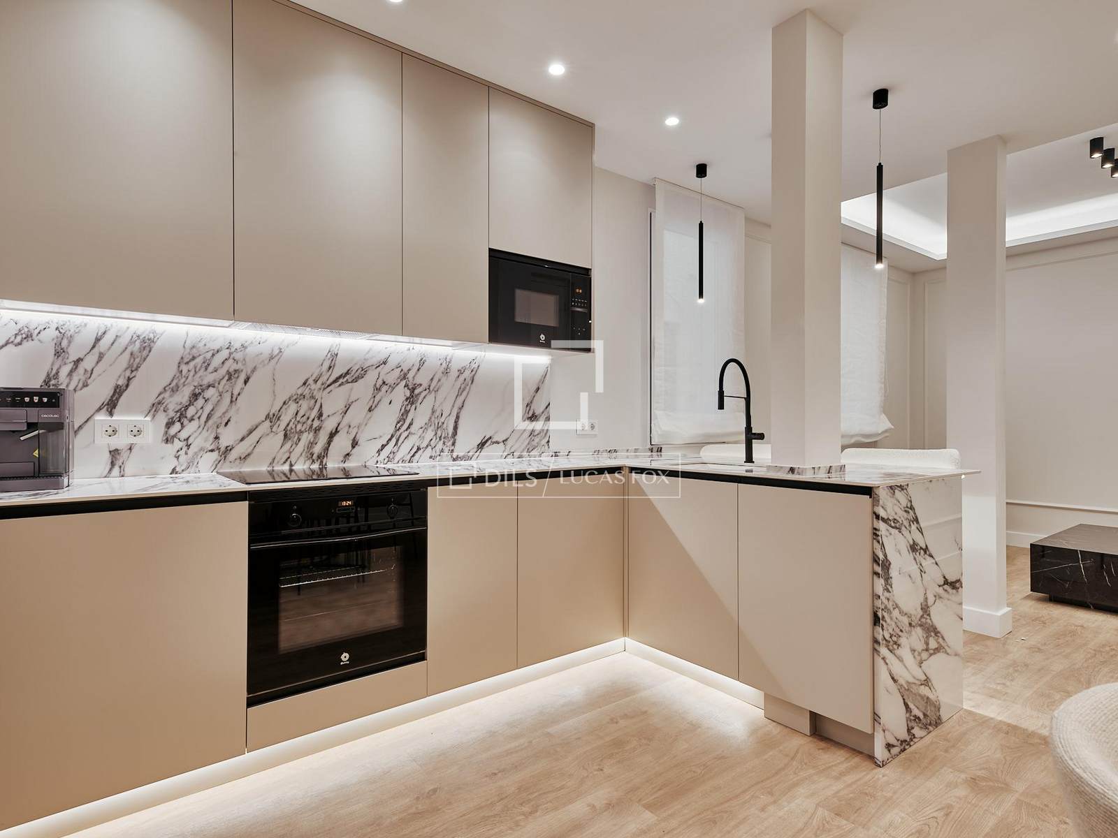 Die Wohnung befindet sich im ersten Stock und wurde nach einem Architektur- und Designprojekt des Studios Arctempus komplett renoviert. Sie bietet eine moderne, elegante und funktionale Raumaufteilung. Die Wohnung verfügt über drei geräumige Schlafzimmer, drei Badezimmer und einen hellen Wohnbereich mit Wohn- und Esszimmer sowie einer voll ausgestatteten Küche.