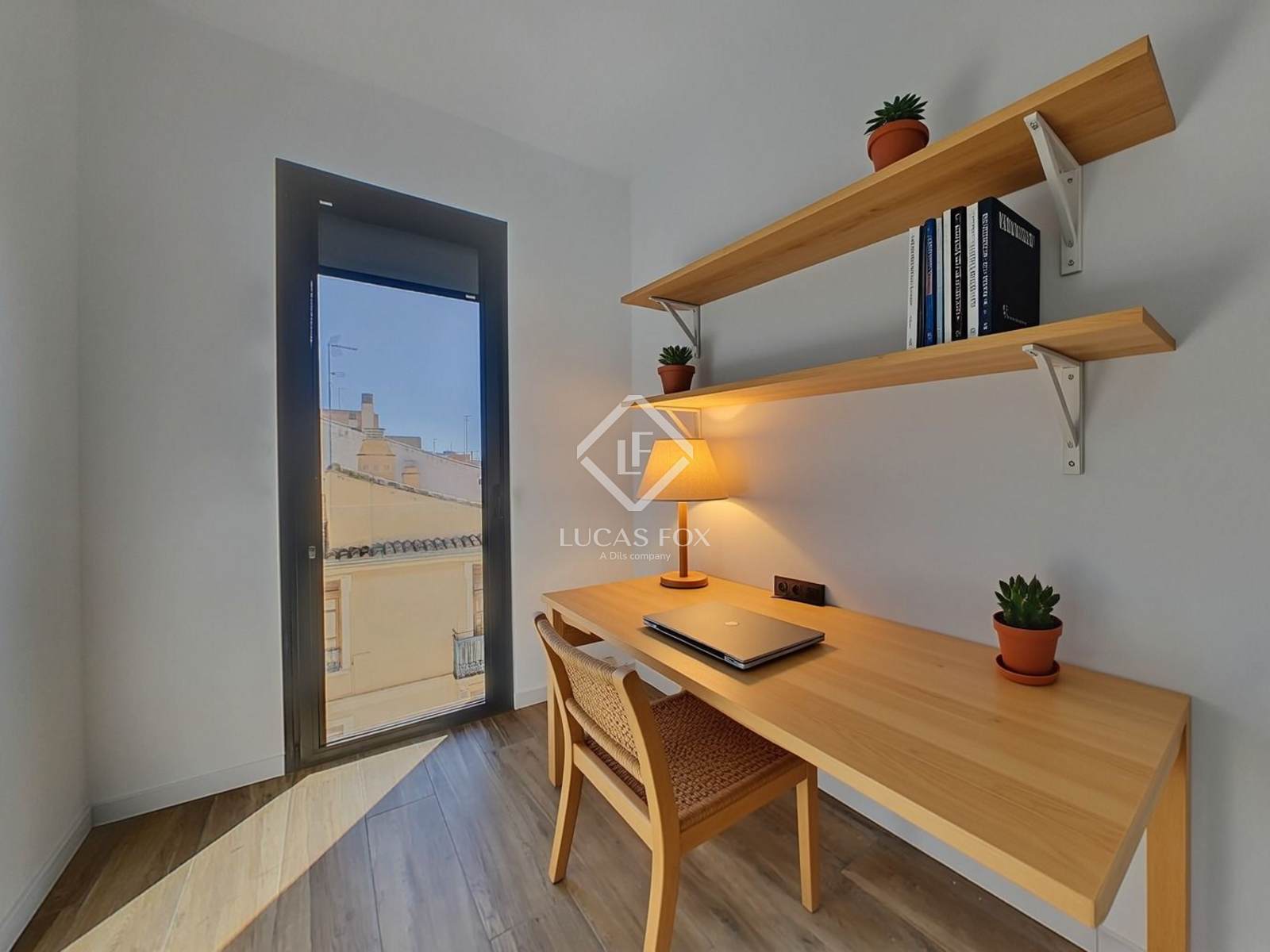 Im Obergeschoss befindet sich ein offener Raum, der als Büro oder Schlafzimmer genutzt werden kann und auf die offene Terrasse mit freier Aussicht führt. Von dort aus kann man eine der größten Kuppeln der Stadt sehen, die Kuppeln der Frommen Schulen von San José de Calasanz.