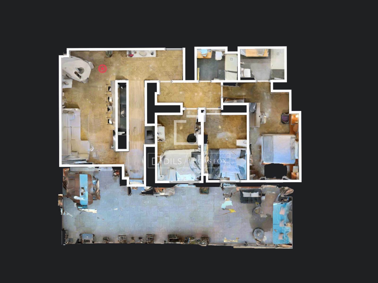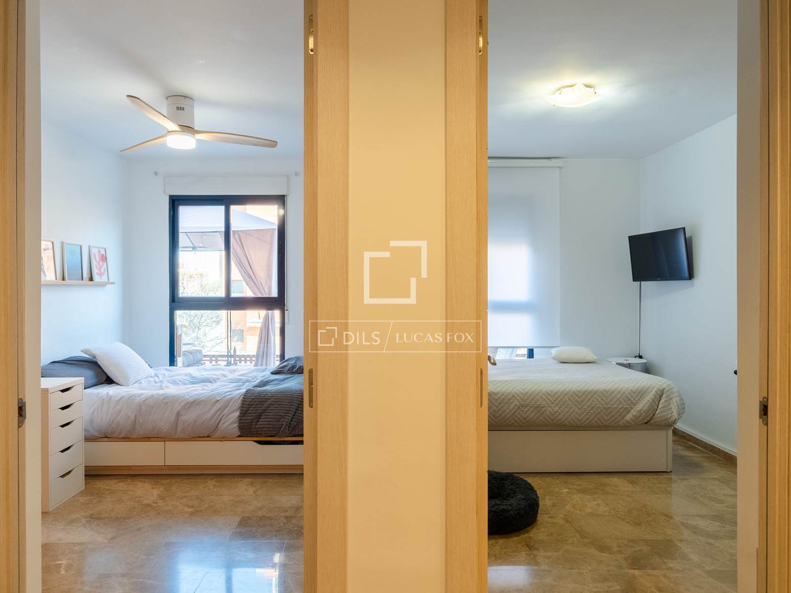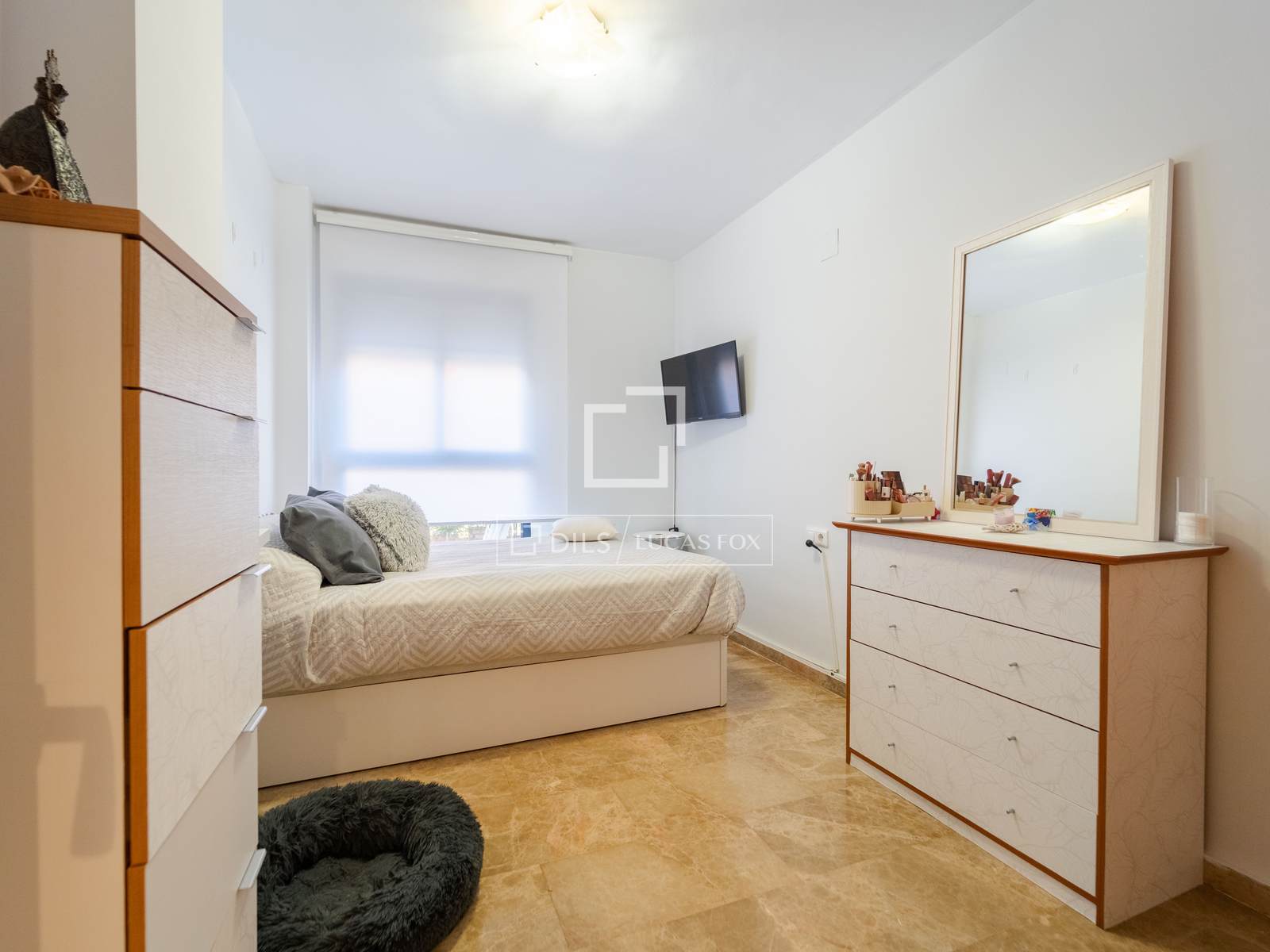Das Haus befindet sich im ersten Stock und ist in 3 Schlafzimmer und 2 Badezimmer unterteilt, wobei eine klare Trennung zwischen Wohn- und Schlafbereich besteht.